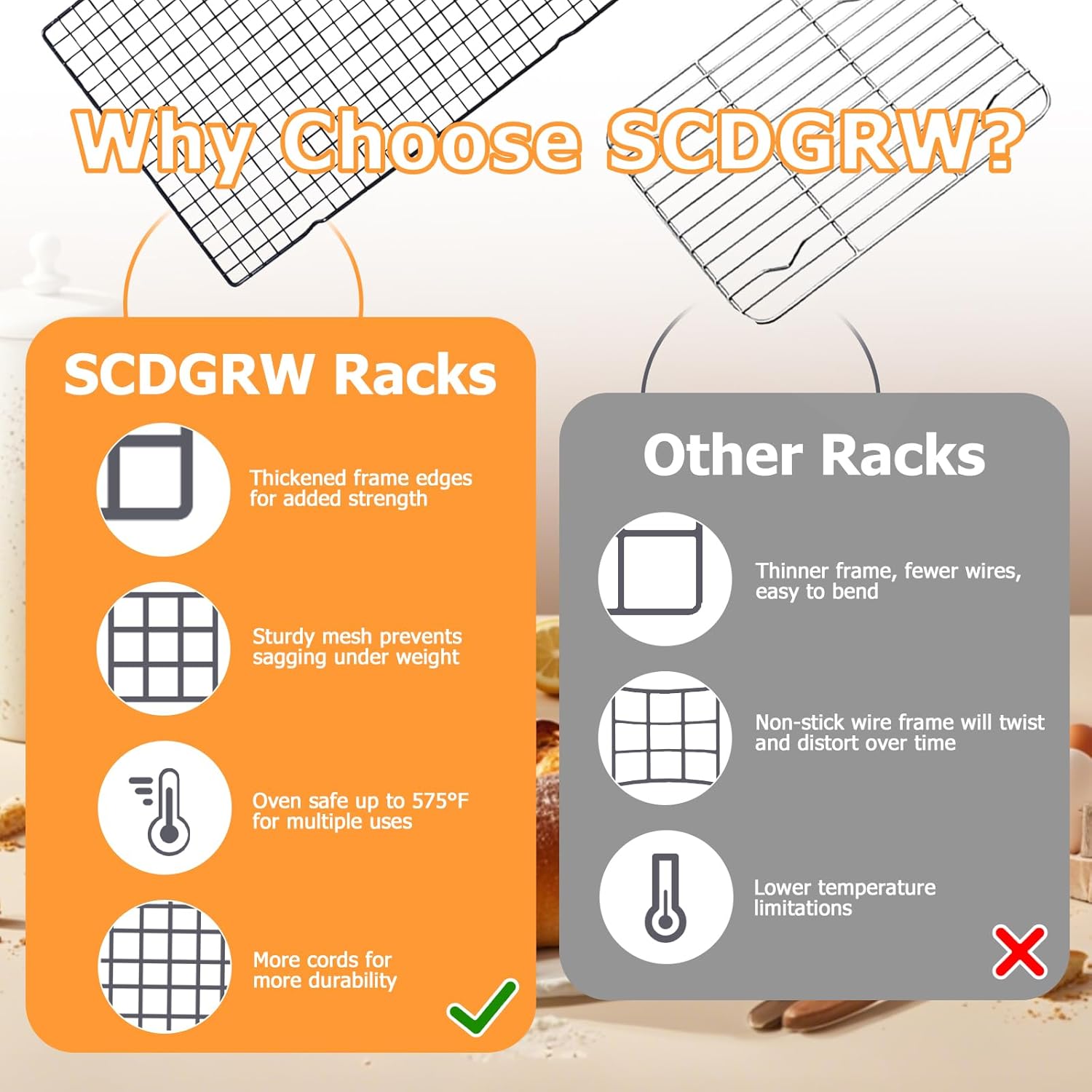 - 【SAFE & EASY TO CLEAN】The baking racks for cooling and cooking is completely dishwasher safe and will not wear or fade in it,just soak immediately after use and use a vegetable brush to get crumbs and bits out of the cross sections, then cleaning is simply a piece of cake