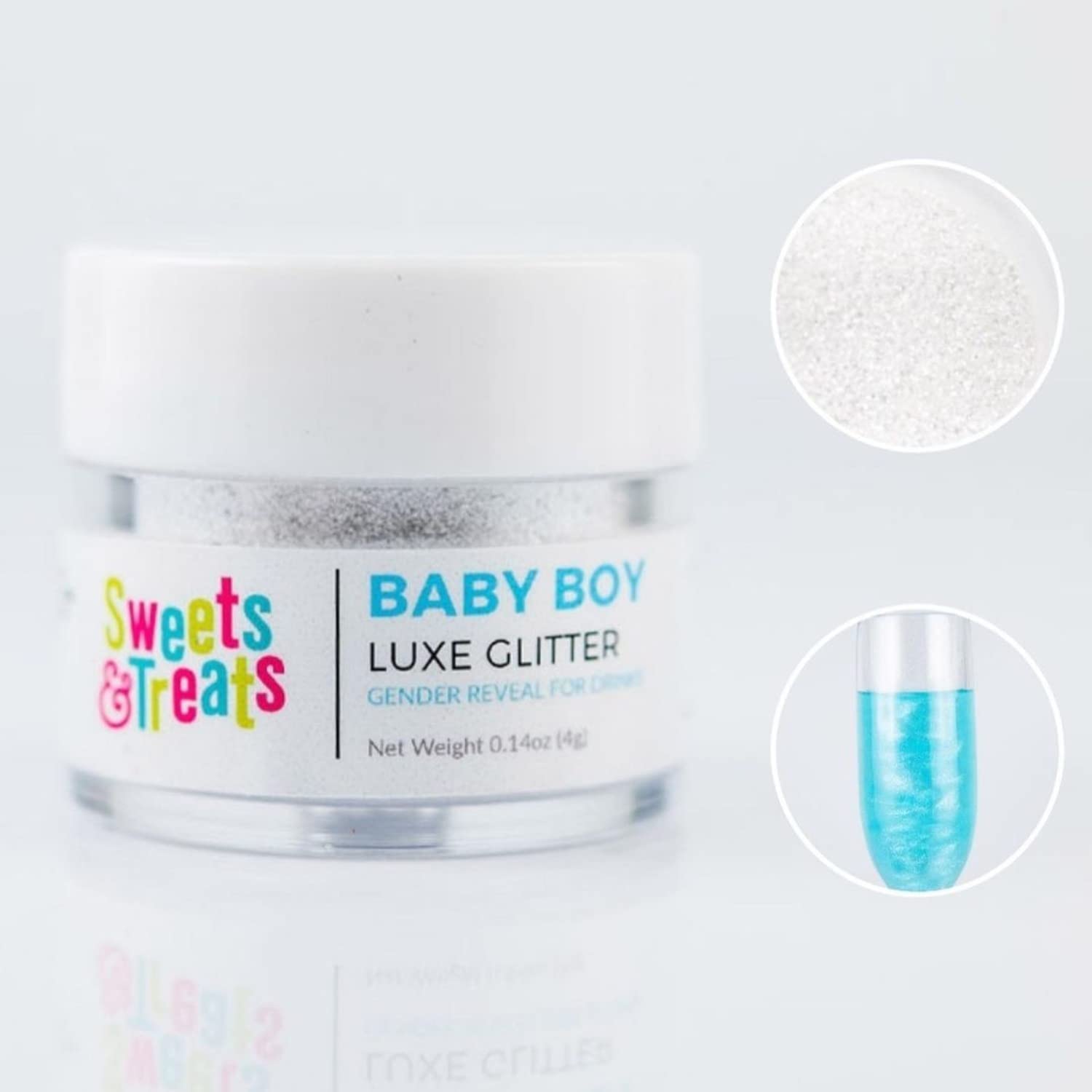 Sweets & Treats Boutique Gender Reveal Decorations Edible Glitter for Drinks, Magical Ideas, Surprise Boy or Girl Sprinkles as Drink Brew Glitter, Baby - Blue