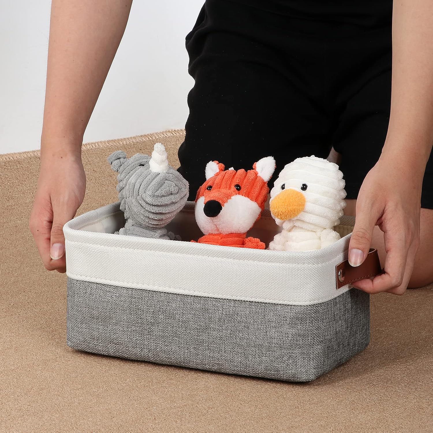 - 【Care】The fabric basket set comes with compression packing which may result in wrinkled and crumpled in long-distance transit. It can be smoothed out by steam iron.