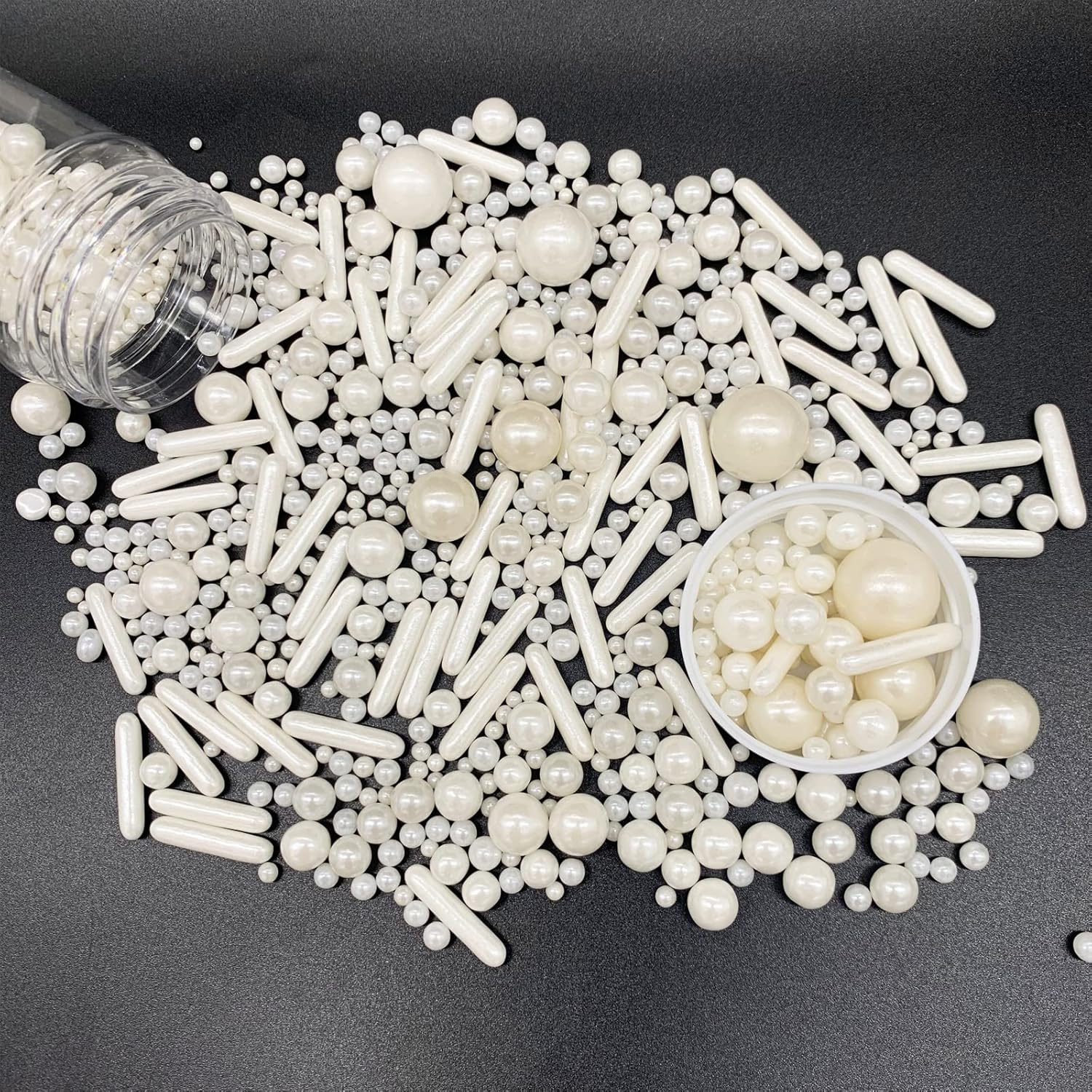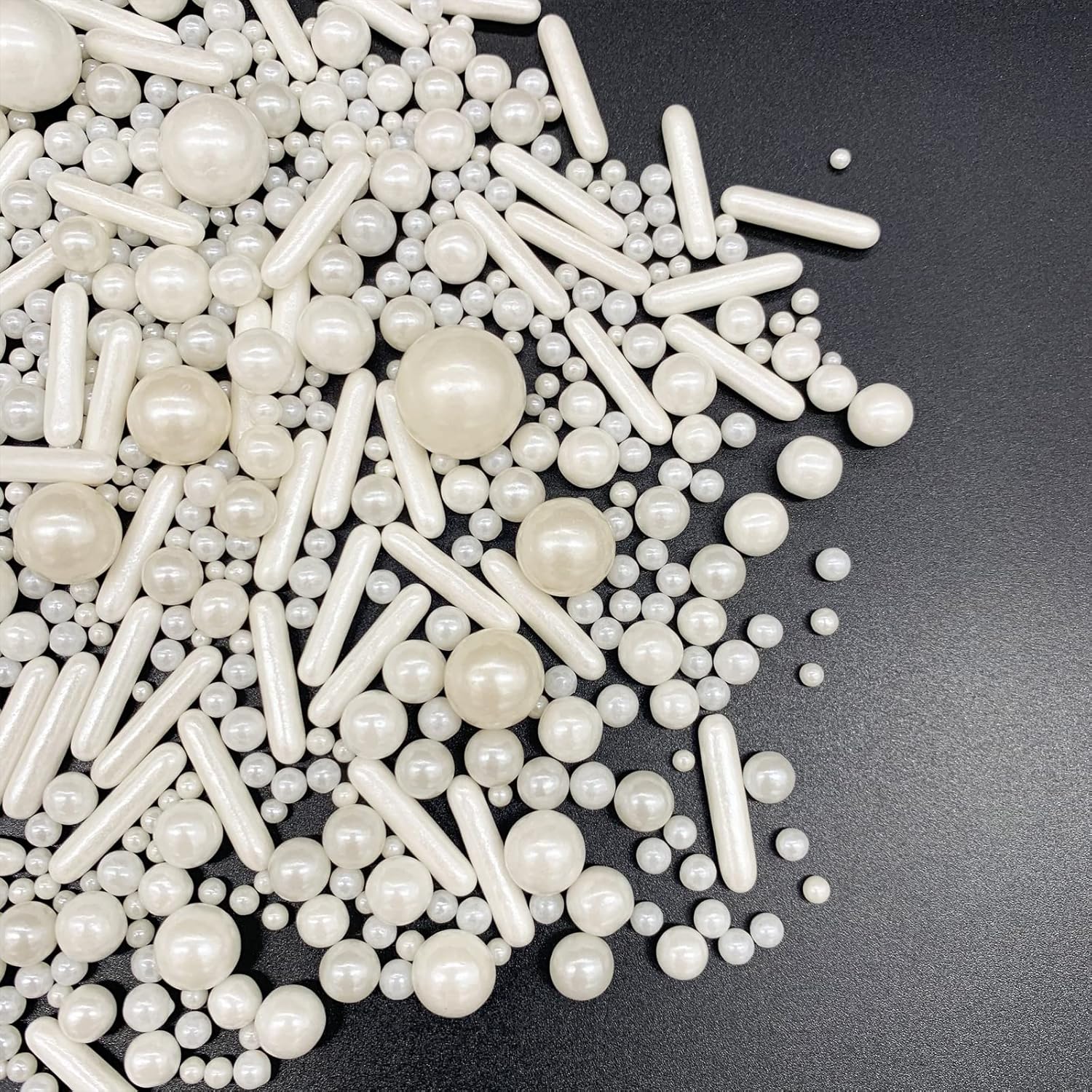 - Package includes :1 bottle white pearl sugar sprinkles candy ,4.58oz/130g.Ingredients: Sugar, Beet Root, Spirulina, Carnauba Wax,Gluten free,Nut free