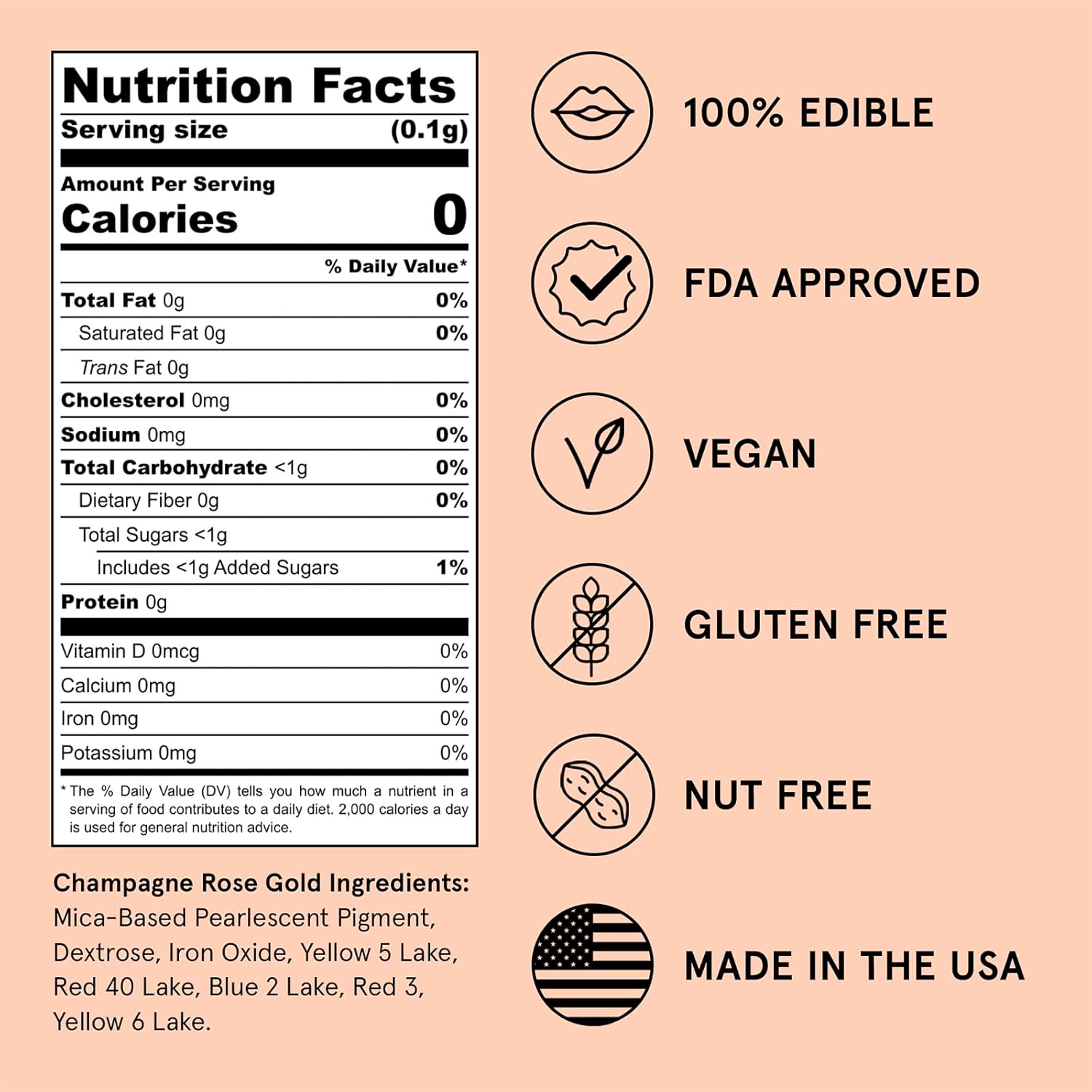 Fancy Sprinkles Champagne Rose Gold Premium Edible Glitter, 100% Edible Glitter for Sparkling Food & Drinks No Taste or Texture (4gm)