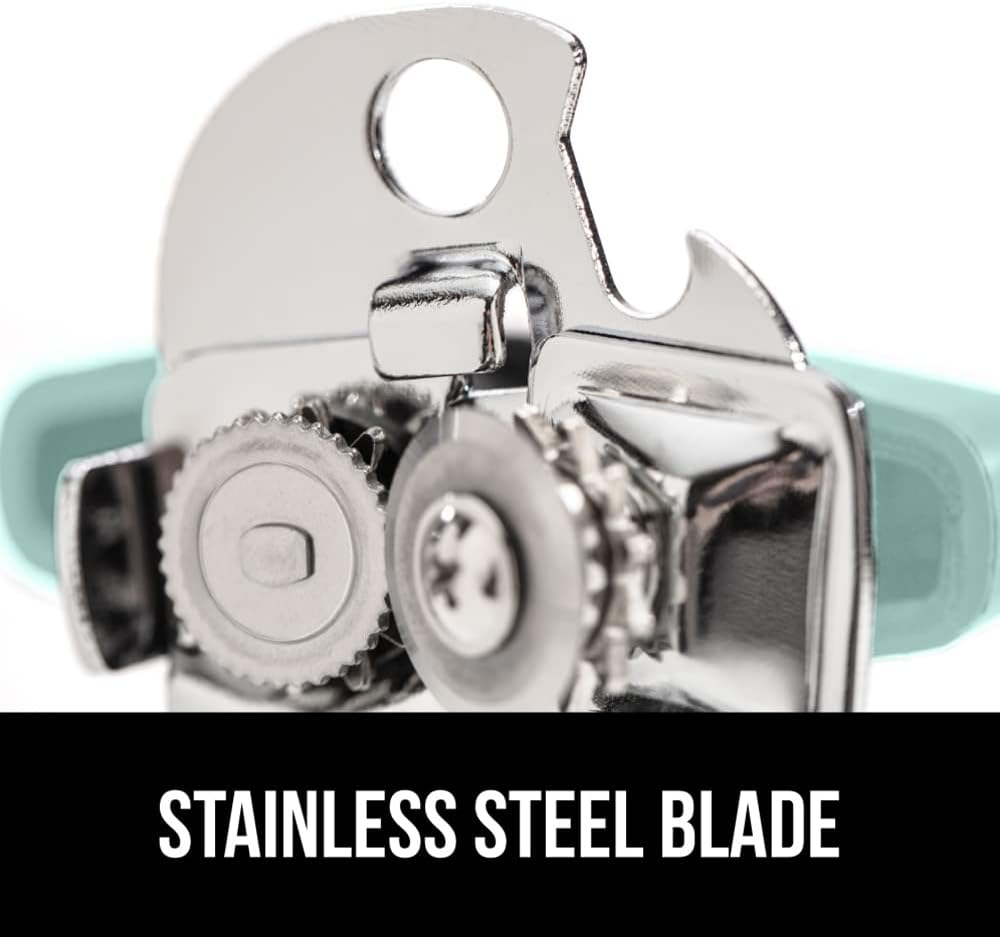 GORILLA GRIP Heavy Duty Stainless Steel Smooth Edge Manual Can Opener and Bottle Openers, Soft Comfortable Handle, Oversized Handheld Turn Knob, US Designed Multifunctional Kitchen Tool, Mint
