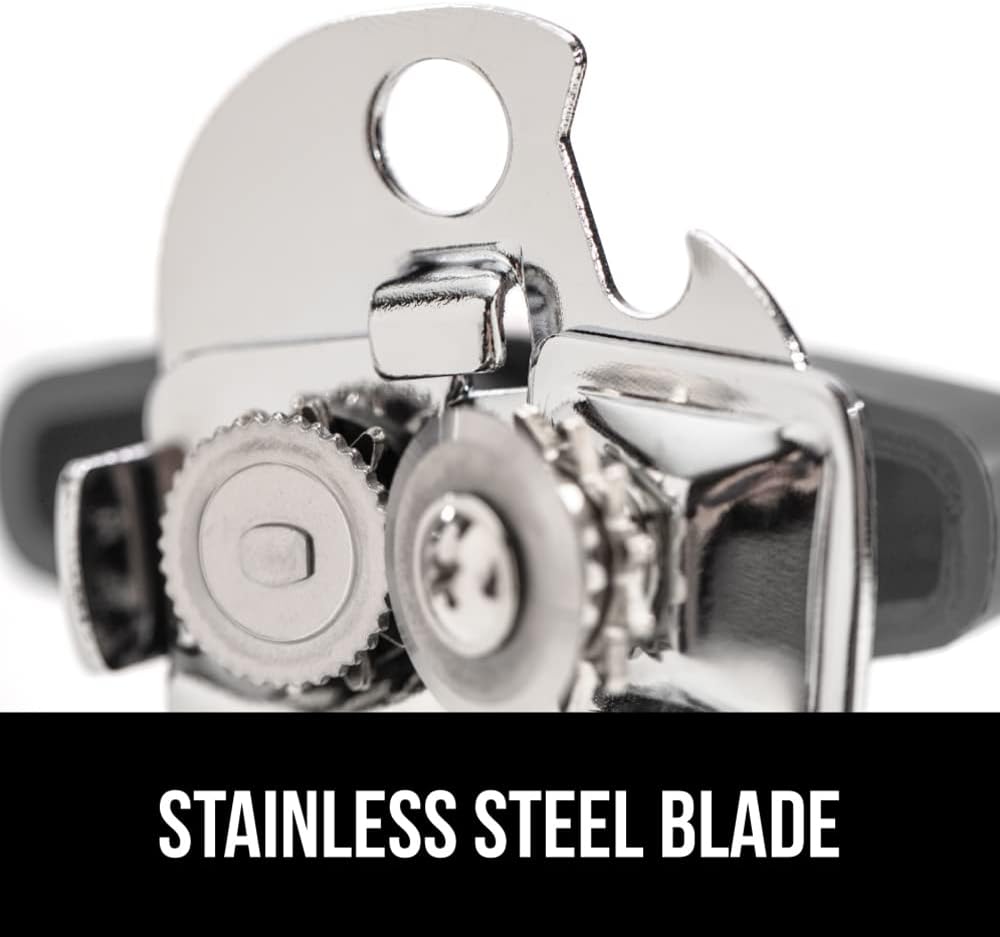 - STRONG AND POWERFUL STAINLESS STEEL BLADE: finally, a more powerful can opener; sharp and durable 100 percent stainless steel cutting wheel will easily puncture all types of cans; rust resistant for long lasting use
