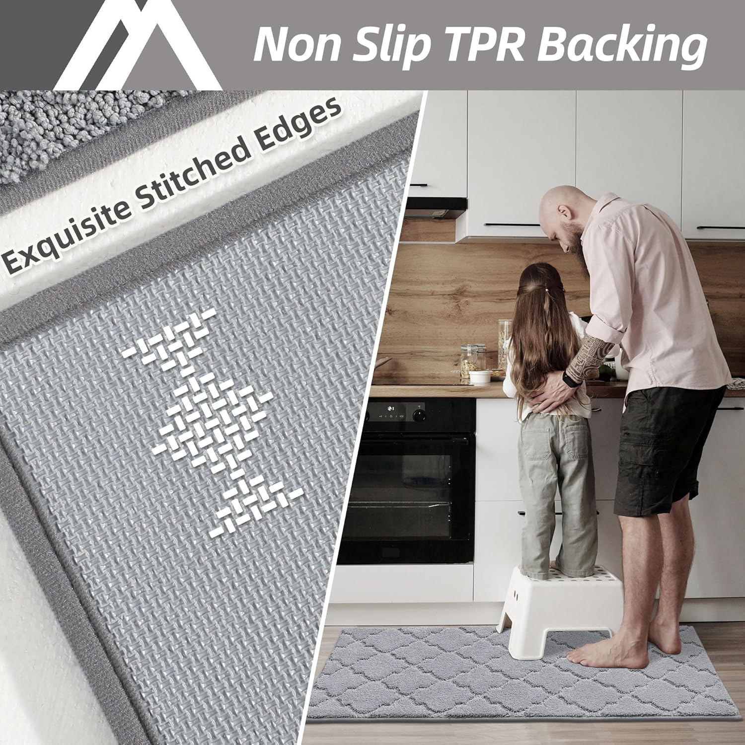 COSY HOMEER Soft Kitchen Floor Mats for in Front of Sink Super Absorbent Kitchen Rugs and Mats 20"x79" Non-Skid Kitchen Mat Standing Mat Washable,Polyester,Grey