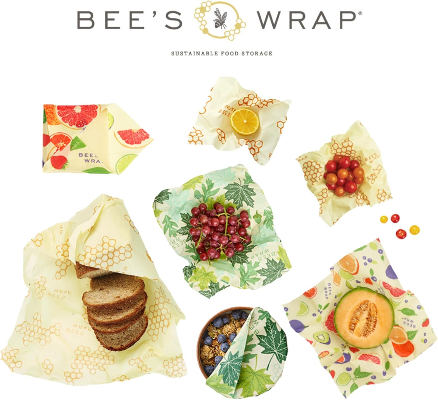 Bee's Wrap Beeswax Wraps for Food - Assorted 7 Pack (2S, 2M, 2L, & 1 Bread) Made in USA Reusable & Organic Food Wraps & Bowl Covers - Eco-Friendly Alternative to Aluminum Foil & Plastic Wrap