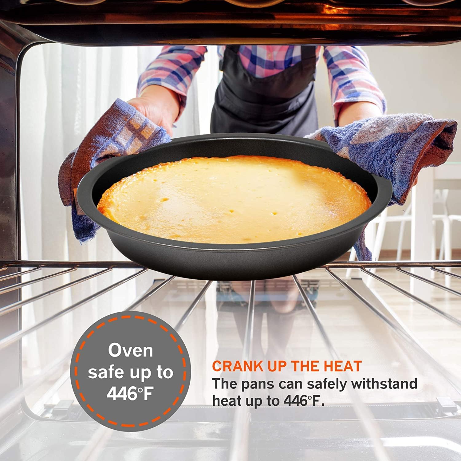 - OVEN SAFE, DISHWASHER SAFE: The pans are oven safe up to 446 degrees. The non-stick coating makes them really easy to clean in the sink but they are dish washer safe as well. Create the most delicious dishes like jelly roll, brownie, chocolate cookies, apple pie, cake and much more!
