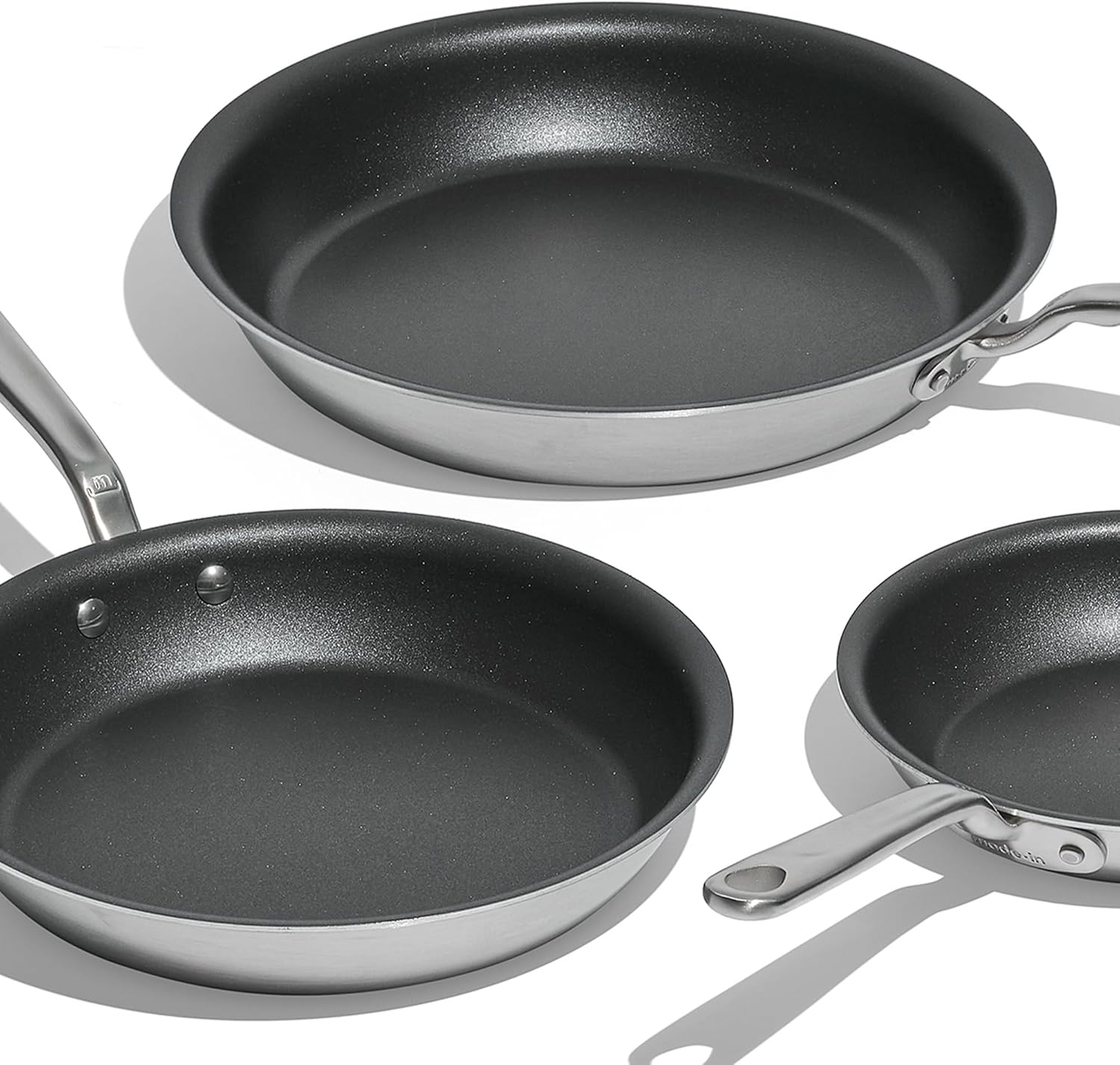 Made In Cookware - ProCoat Non Stick 3 Piece Frying Pan Set (Includes 8",10",12") - 5 Ply Stainless Clad - Professional Cookware - Crafted in Italy - Induction Compatible - (Graphite)