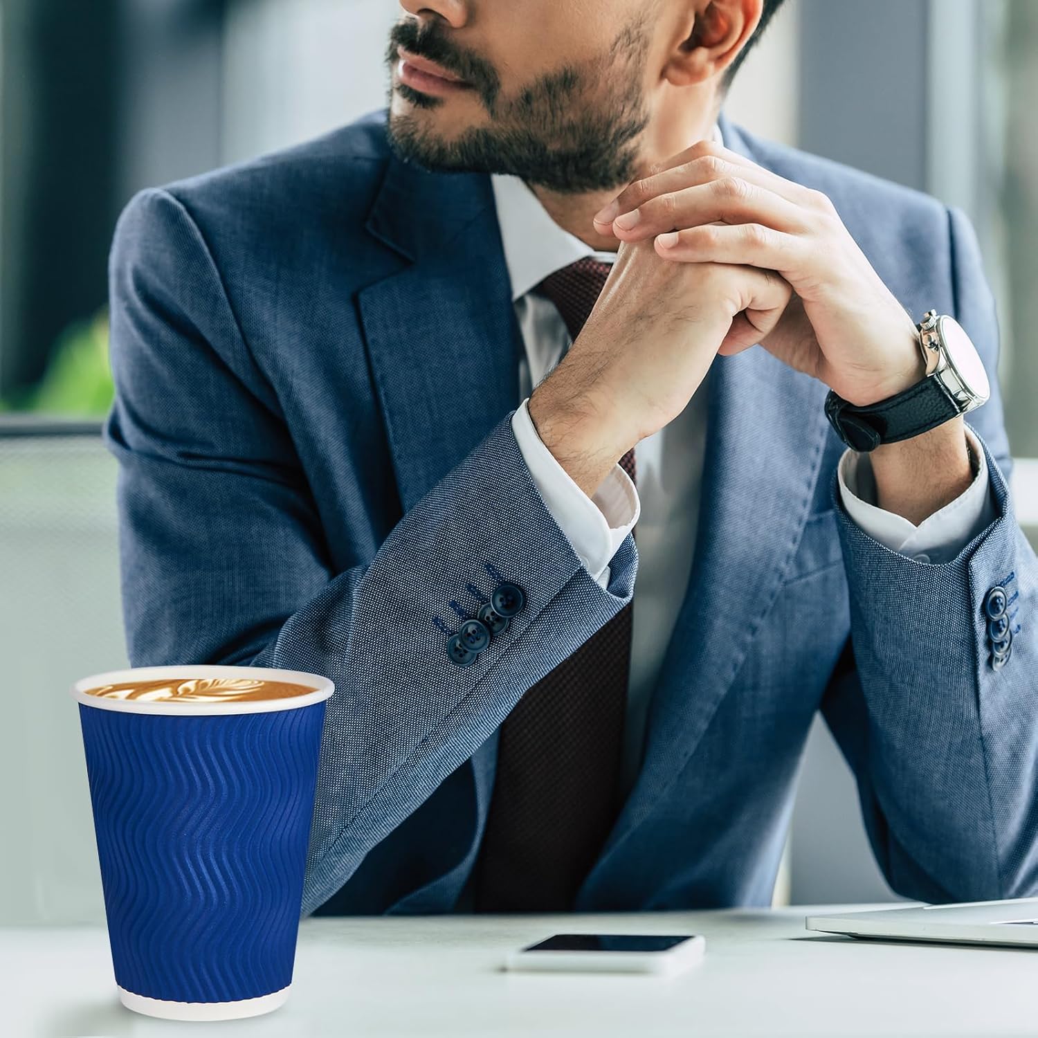 JollyPack 60 Pack 12 oz Paper Coffee Cups, Blue Disposable Beverage Cups with Insulated Ripple Wall for Coffee, Tea, and Hot Chocolate
