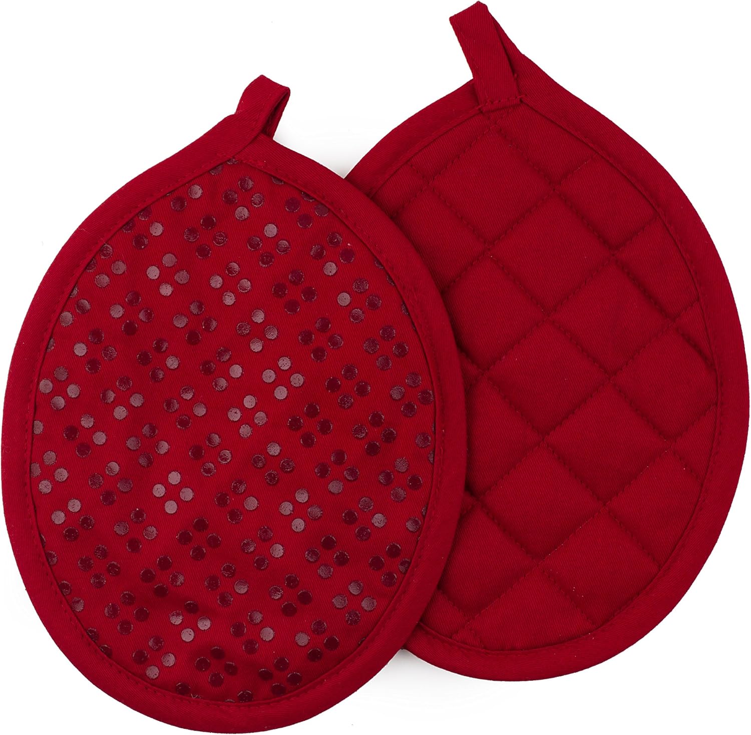 Sticky Toffee Silicone Pot Holders Set of 2, Red, Heat Resistant to 500°F, Non-Slip Oven Hot Pads with Oeko-Tex Cotton Shell, 7 x 9 in