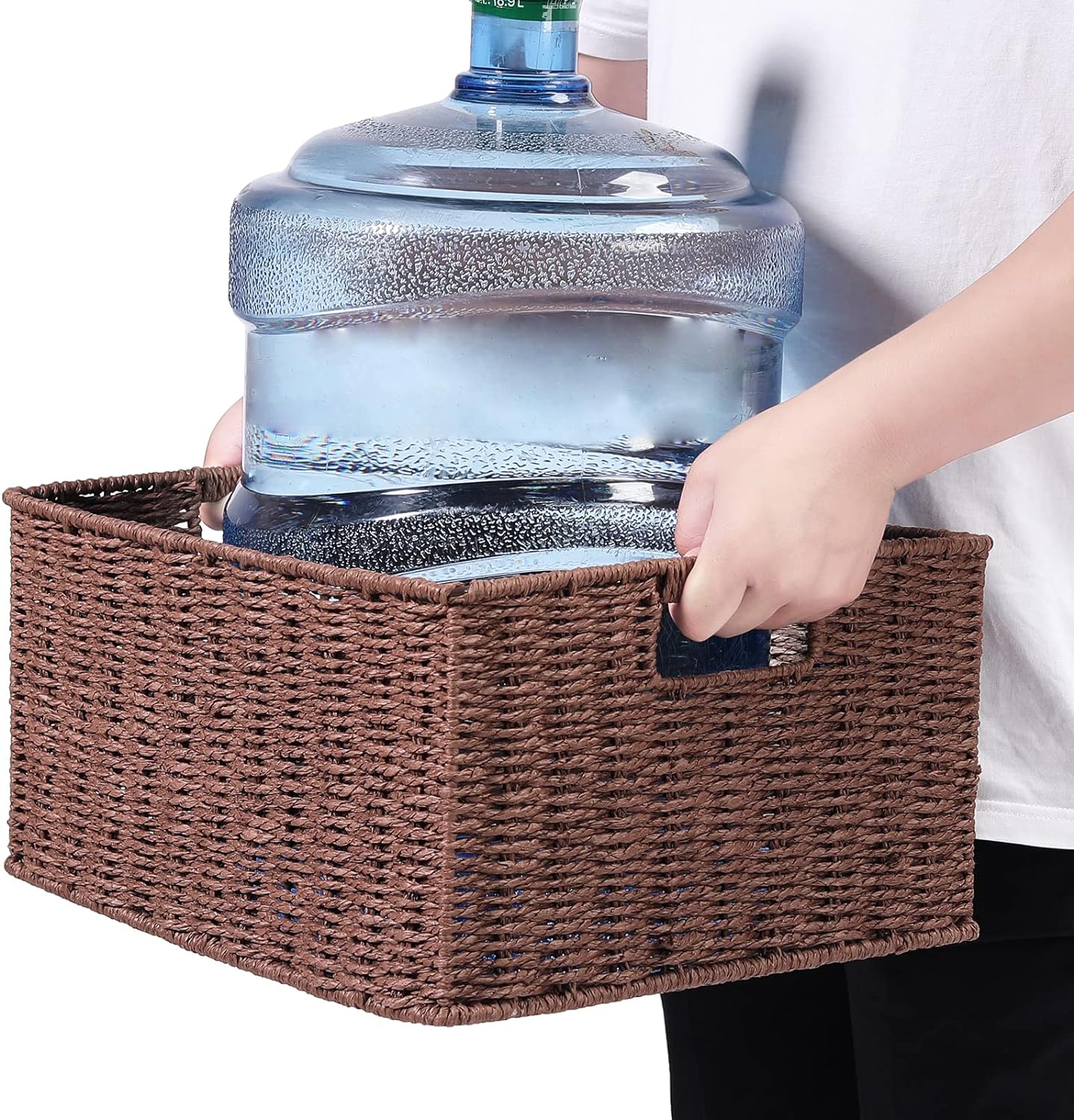 - Decorative and Versatile: Elegant and simple rectangular design in dark brown color to complement or match the home decor, clean up and organize your home with these rustic decorative baskets.