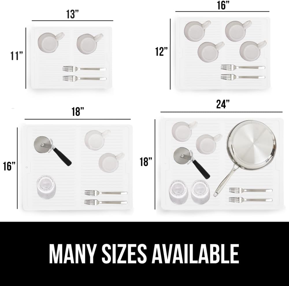 GORILLA GRIP 100% BPA-Free Patented Silicone Dish Drying Mat for Kitchen Counter, Water Catching Ribbed Design, Easy Clean Waterproof Sink Liner, Heat Resistant, Fits Under Rack, 16x12 Inch, White