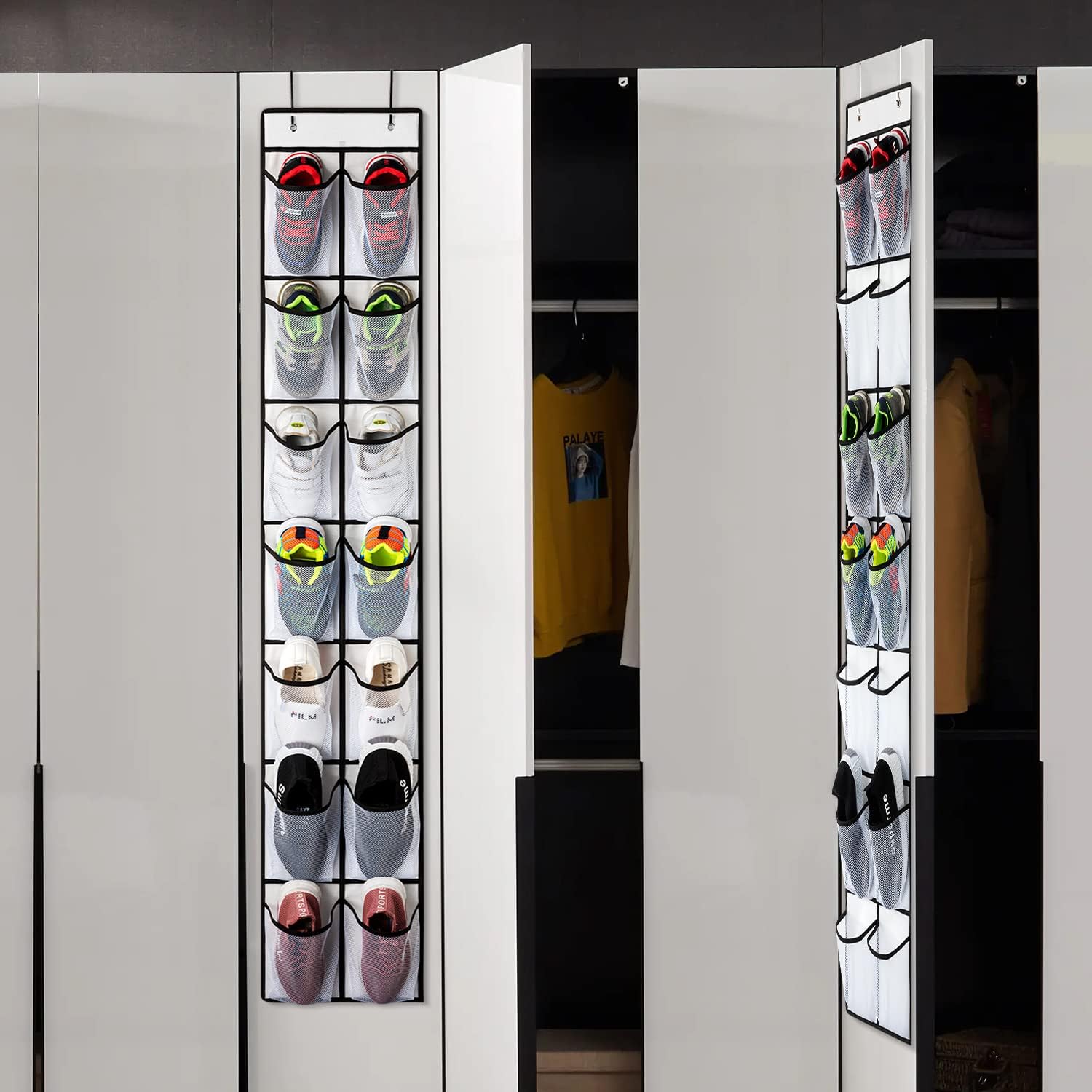- ※【28 Large Deep Pockets in Total 】Each door shoe organizer has 14 pockets , 28 Pockets in total. can hang 14 pairs of shoes at least and holding the shoes of your whole family.