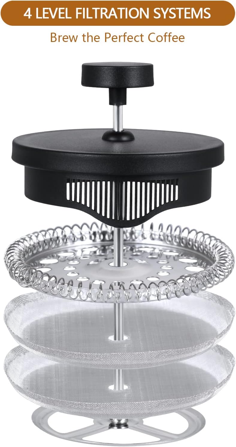 - 【Why is it recommended? 】Our French Press is affordable, elegantly designed and very user-friendly. So not only can it accompany you on trips, but it's a nice addition to your kitchen at home. Ultimately, it can be a wonderful gift for your lover, family,Our French Press Coffee Maker comes with a 1-year replacement policy. We will provide free replacement within 1 year regardless of any quality problems of the product