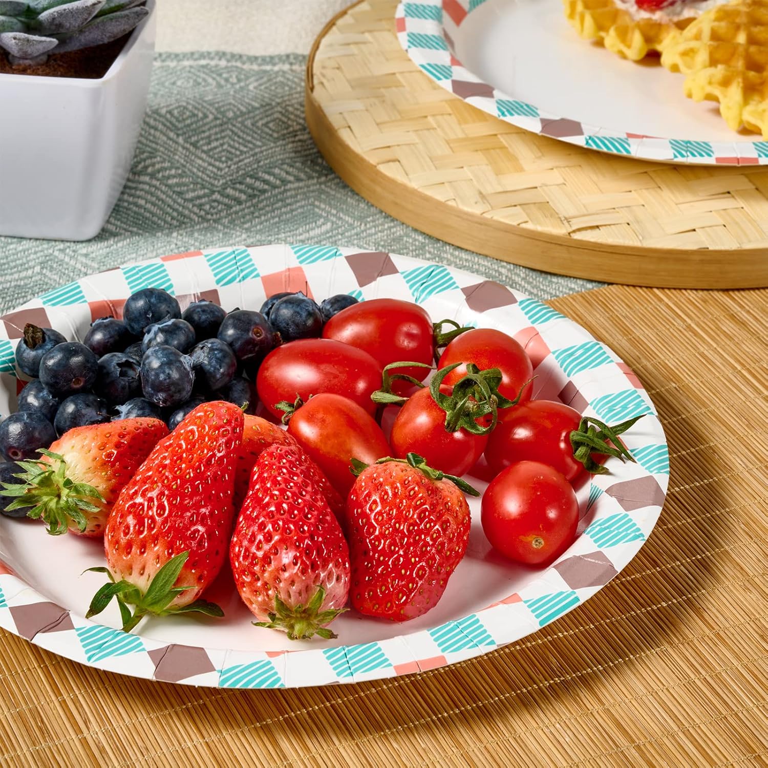 - Hassle-Free: These 10 inch paper plates' elegant print design is party friendly and can be thrown away after use. You can save time on cleaning up and focus more on fresh food, family, friends and what's important
