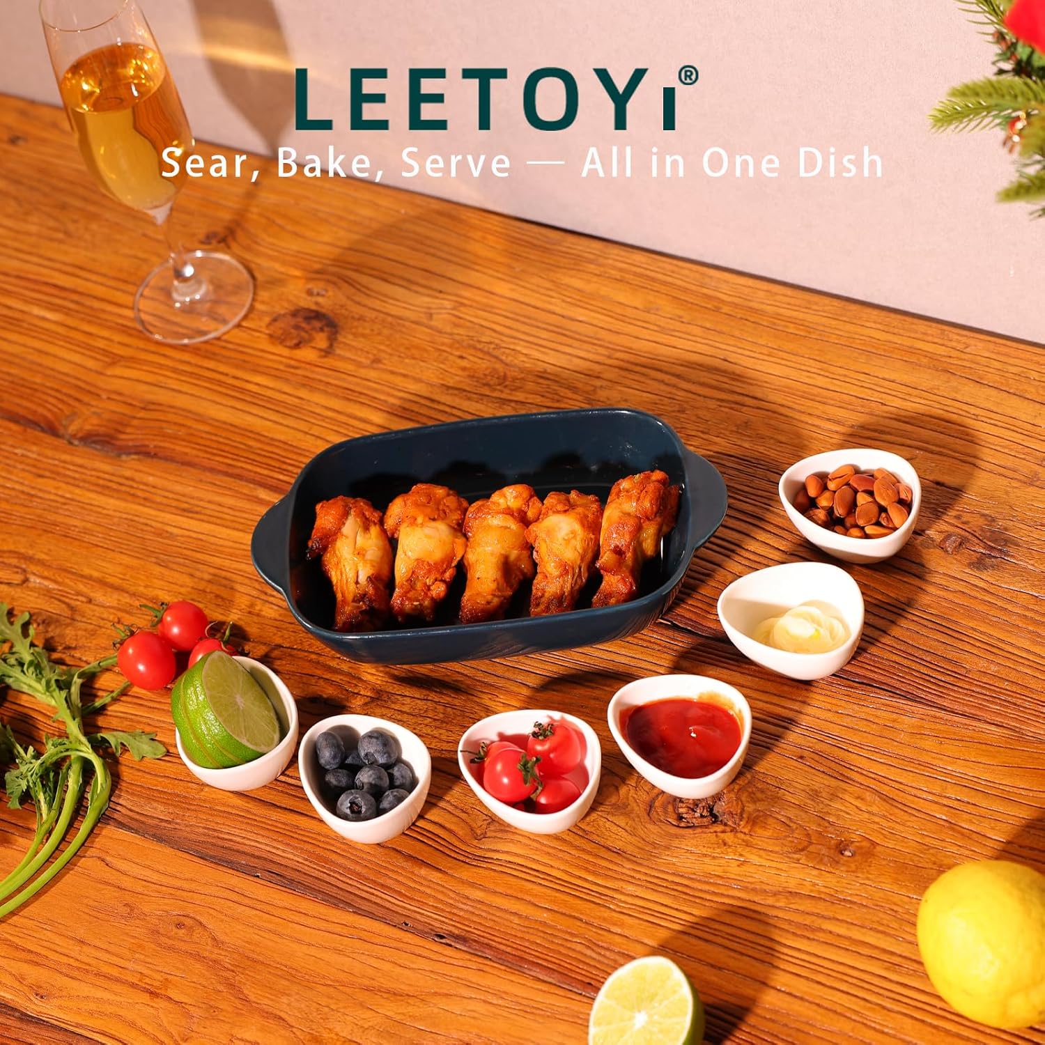 LEETOYI Ceramic Small Baking Dish 7.5-Inch Set of 4, Rectangular Bakeware with Double Handle, Baking Pans for Cooking and Cake Dinner (Navy)