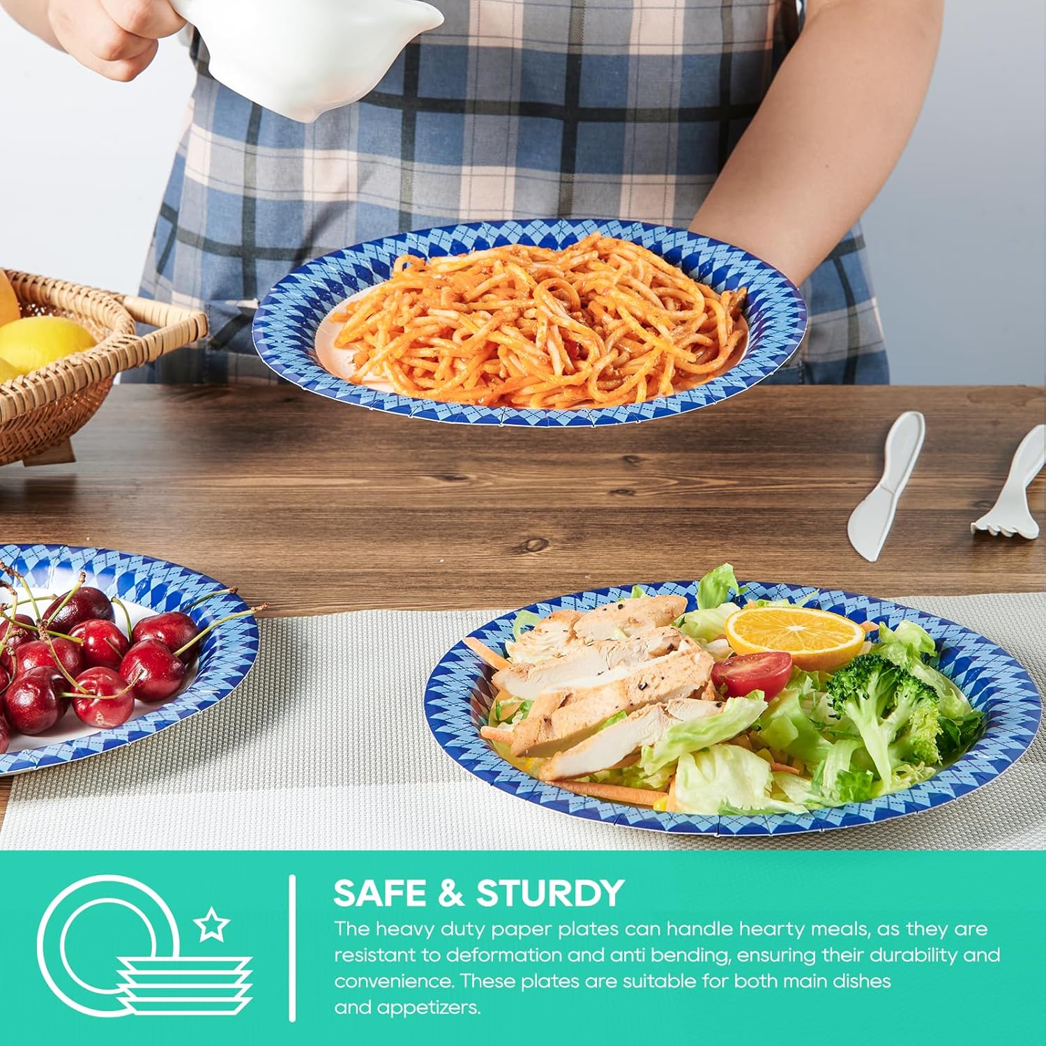 - Sturdy paper plates are made of high quality material and are cut resistant, paper plates have some depth for messy and large quantities of food without deformation.