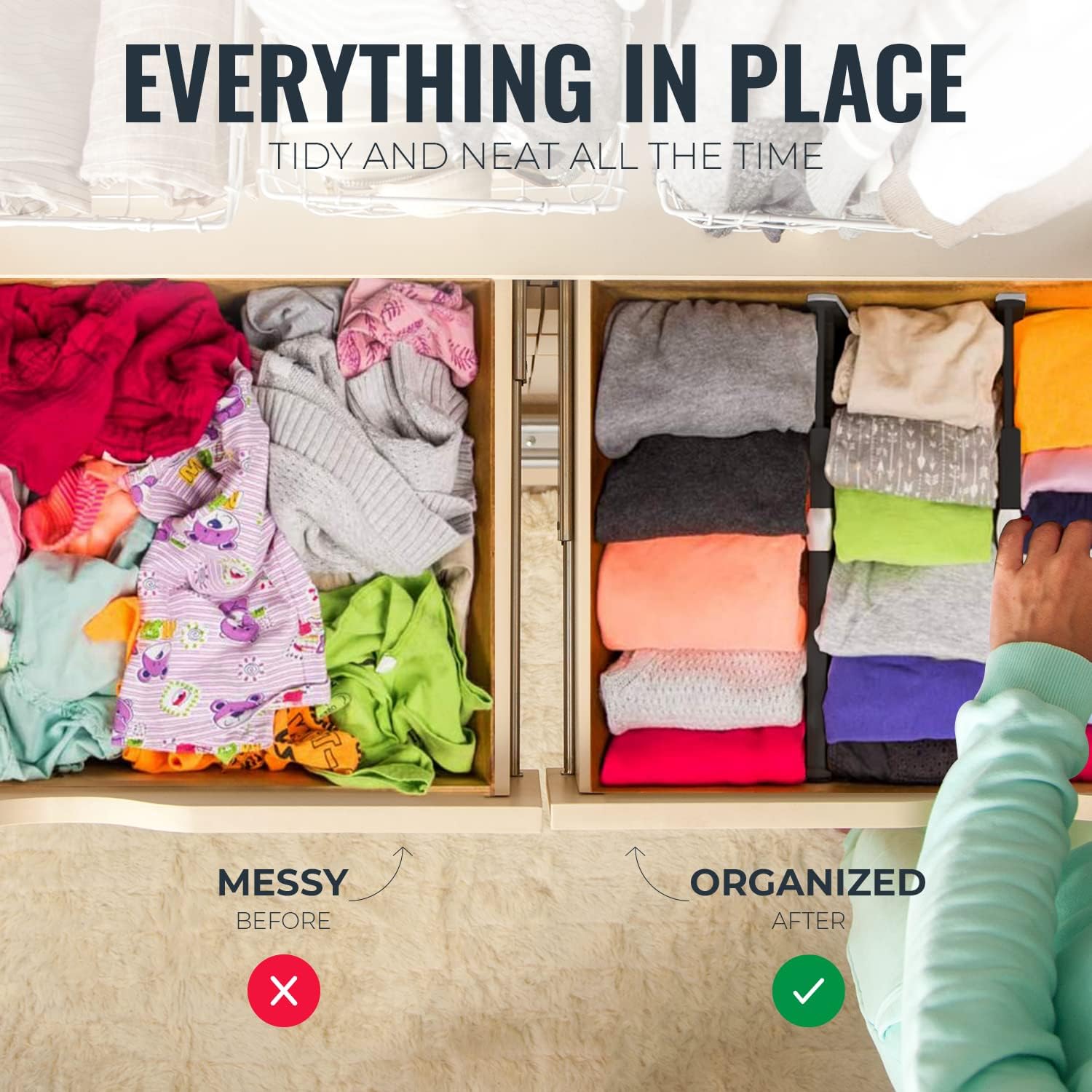 - Designed for Larger Drawers: Includes three 6-inch tall, expandable dividers that adjust from 13 to 22 inches, perfect for deep drawers of various sizes.