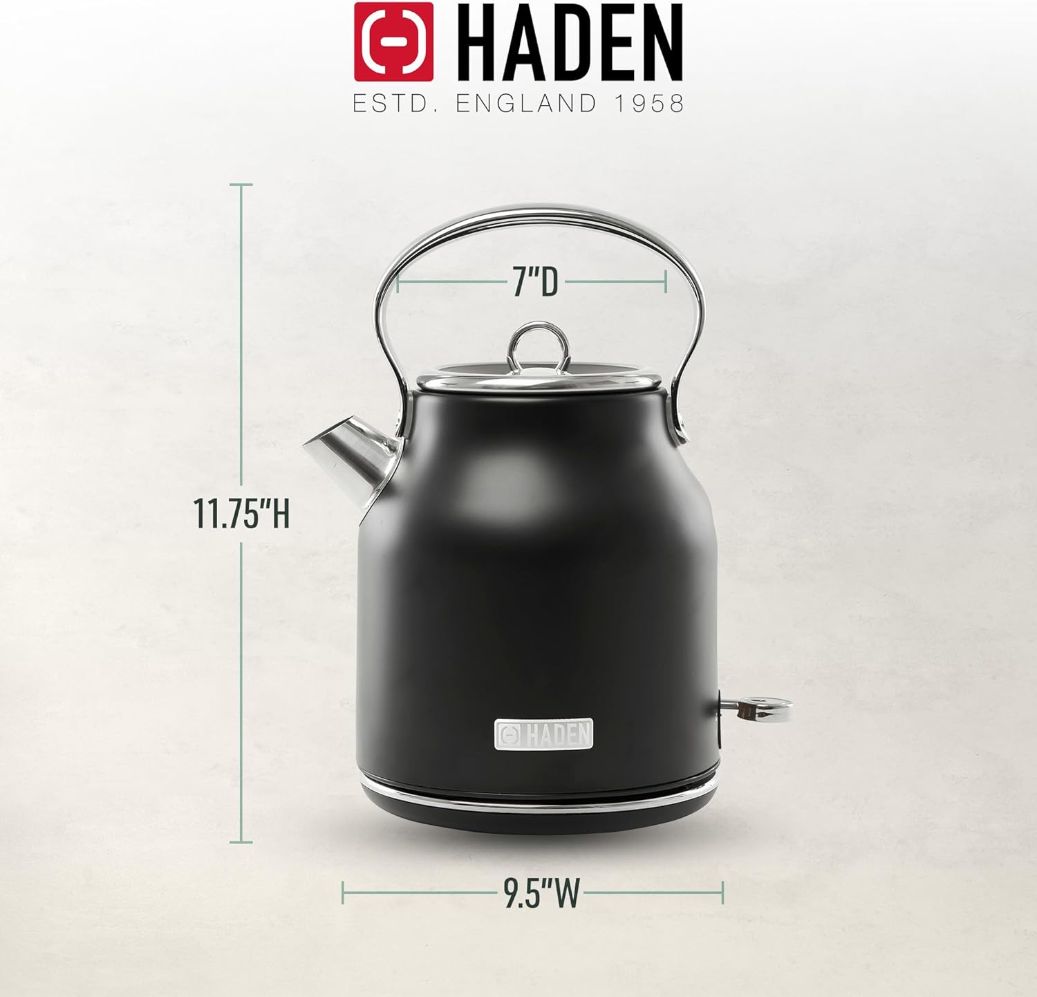 HADEN Heritage 1.7 Liter Stainless Steel Electric Kettle, Hot Water Kettle with 360-Degree Base and Auto Shutoff, Black & Chrome