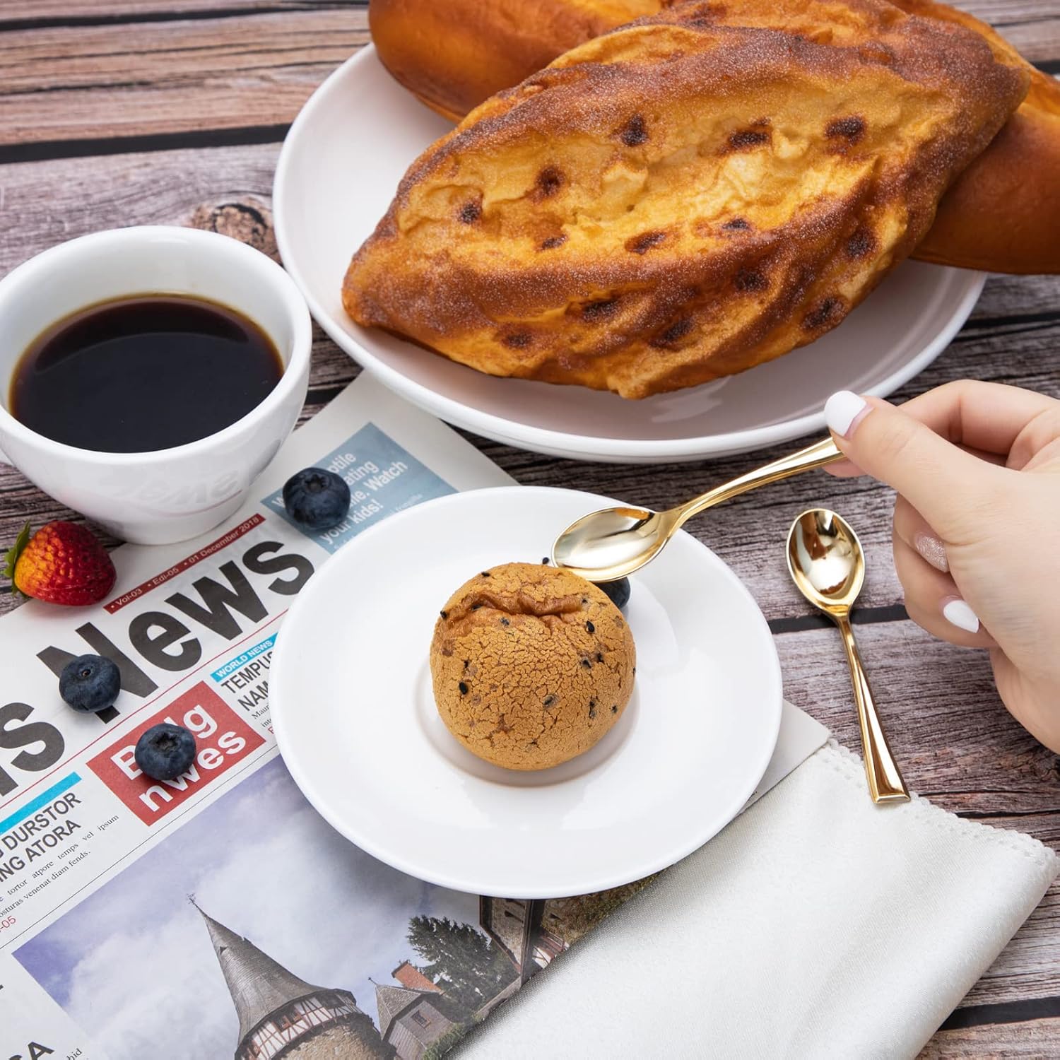 - APPLICABLE SCENARIOS: WDF mini gold spoons great for desserts, mousse cakes, puddings, ice cream, yogurt, appetizers, condiments, sugar and more. Also suitable for daily use, parties, birthday wedding and Christmas.