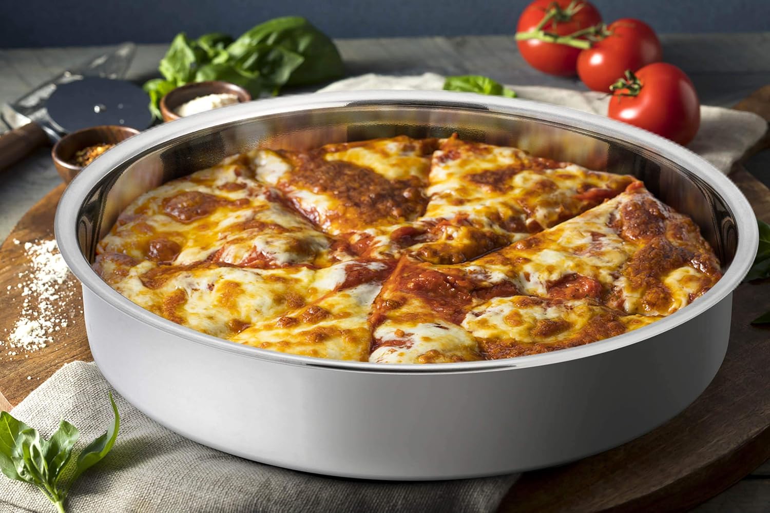 - 【HEALTHY】 P&P CHEF round baking pan set is make of pure stainless steel, Without any harmful chemical material or toxic coating chipping off into your food, Great replacement for aluminum and non-stick coating pans, Healthy for your daily baking use