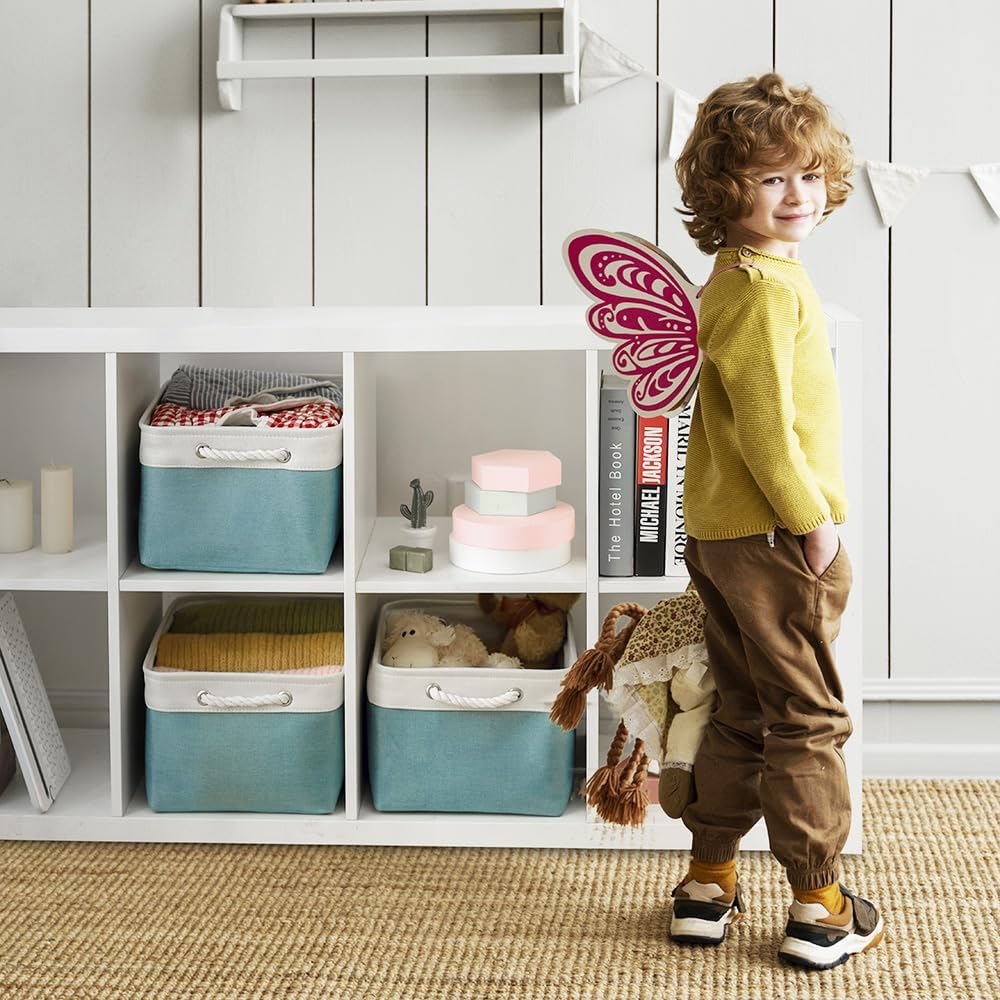 - High quality: The outer material of the storage box is made of imitation linen, with thickened EVA in the middle, refusing to sag, high quality can keep the storage box firm and stylish. The lining is thin cotton, easy to clean, just wipe with a wet sponge or cloth. The handle material is made of cotton and linen handle, wide and not strangled hands.