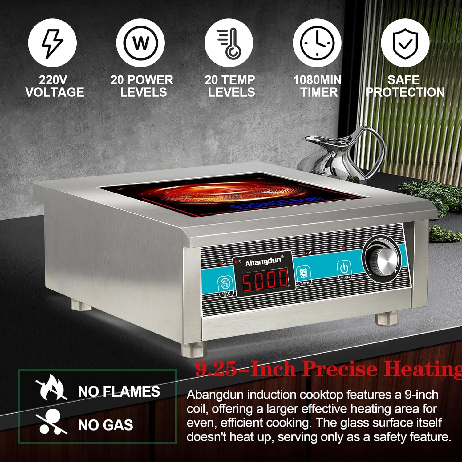 Commercial Induction Cooktop 5000W/190V~275V Commercial Range Countertop Burners Non-circulating Heating at Low Power18-hour Timer Hot Plate for Kitchen