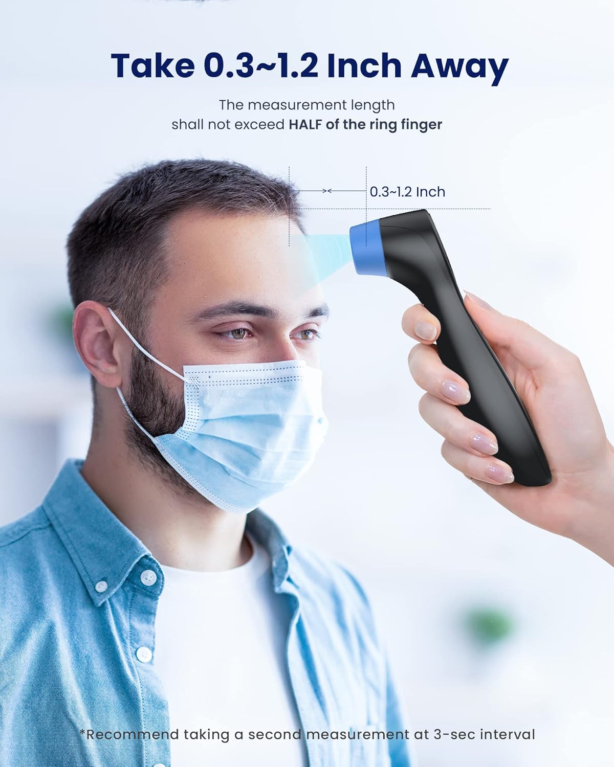 - 1s FAST & & HIGH ACCURATE - femometer forehead thermometer is equipped with clinically proven high precision infrared sensor, the measurement result can be accurate to 0.1°F/℃, the accuracy is ±0.4°F/ ±0.2℃. Just press the "START" button 0.2 to 1.2 inches from the forehead to get the result in 1 second