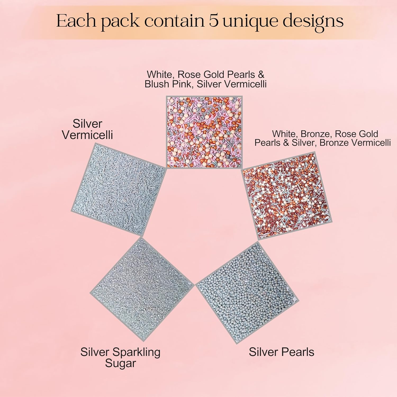 Confect Edible Cake Sprinkles Mix – Silver, Bronze & White Pearls, Silver Jimmies, Sparkling Sugar – Dessert Toppings for Cakes, Cupcakes, Cookies & Baking Decoration | Vegan, Gluten-Free, Nut-Free, Soy-Free, Dairy-Free, Palm Oil-Free- 5 Oz