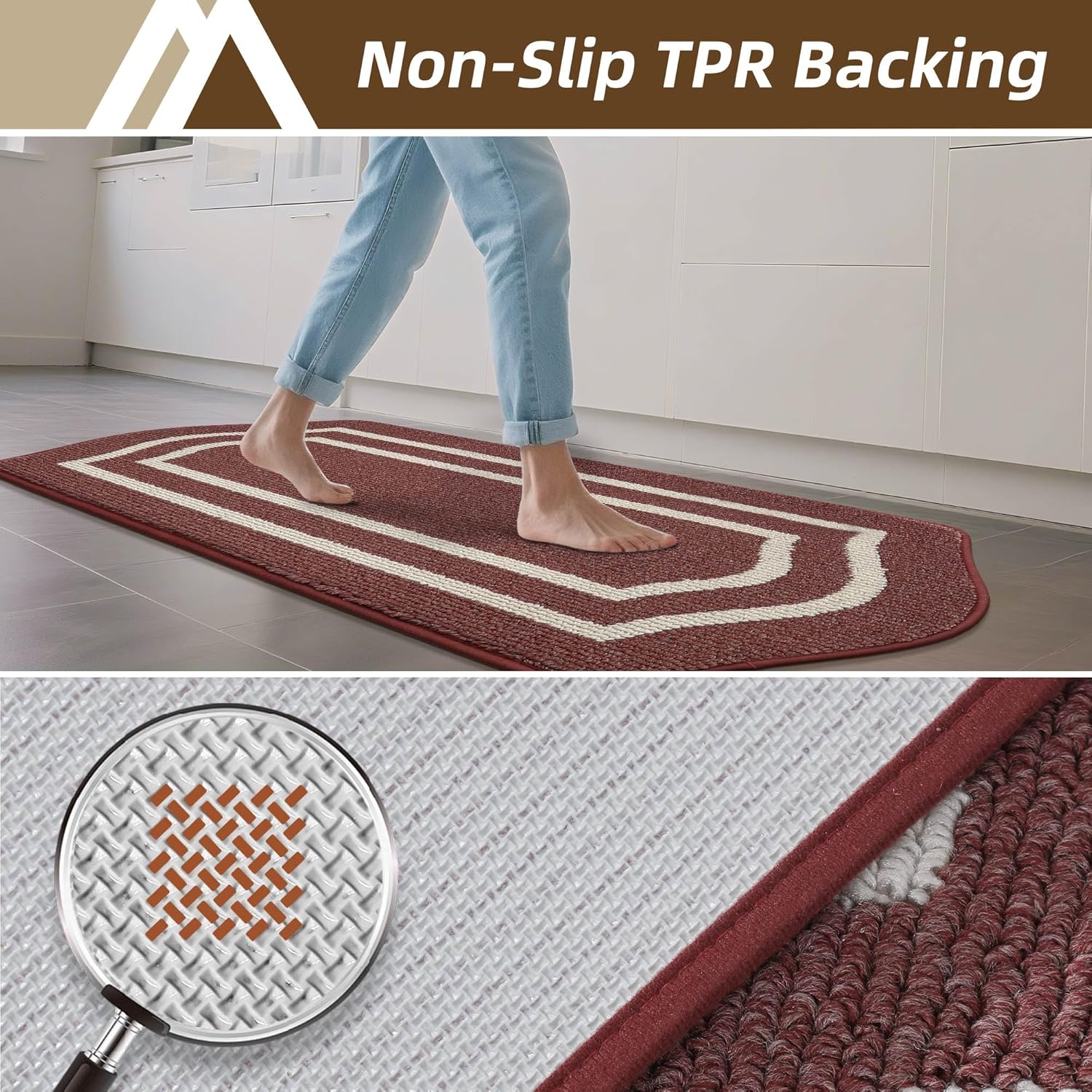 COSY HOMEER Long Kitchen Floor Mats for in Front of Sink Super Absorbent Kitchen Rugs and Mats 24"x48" Non-Skid Kitchen Mat Standing Mat Washable,Polypropylene,Red,Frame
