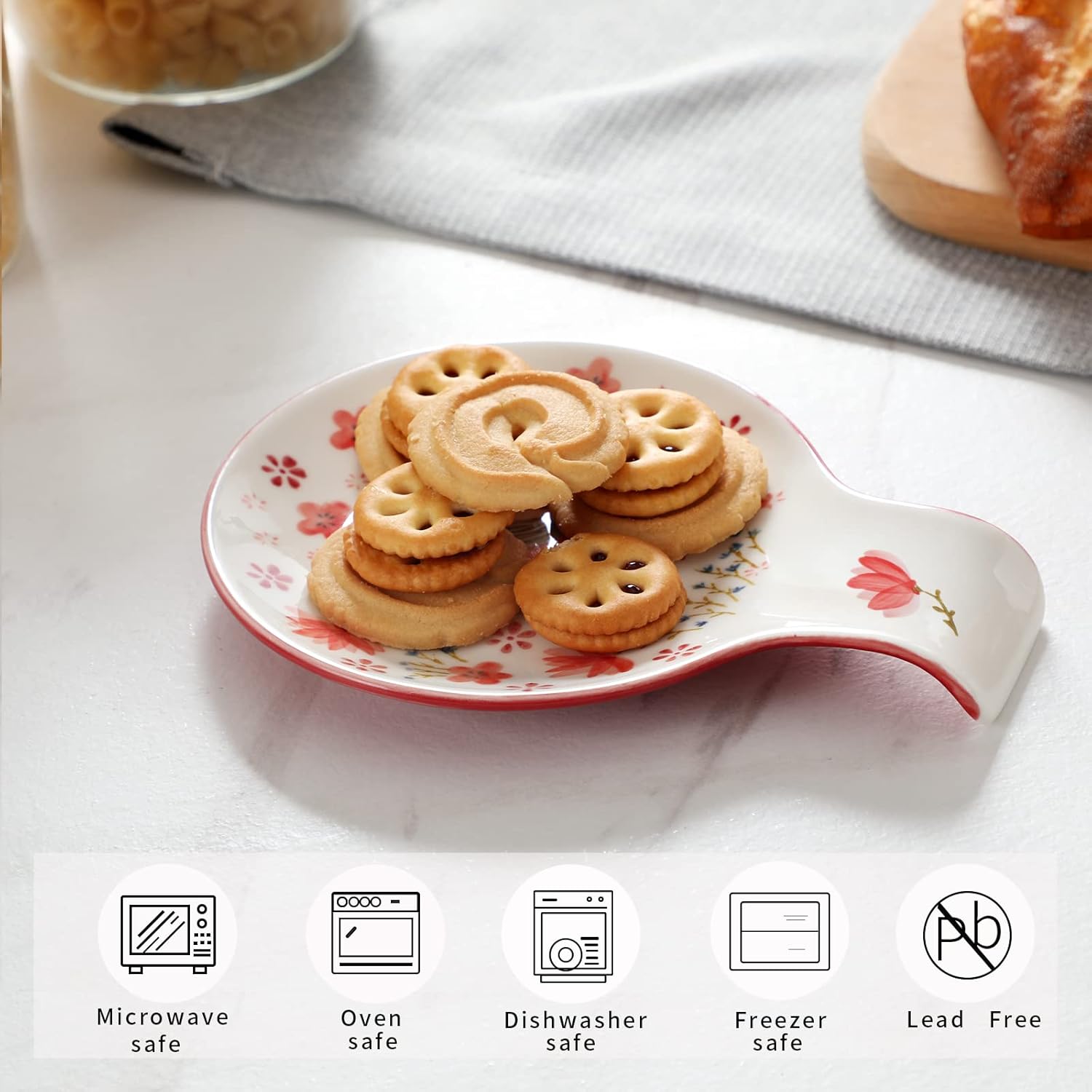 - 【Multiple Uses】The product is not only a spoon rest, but also a Dessert Plate, a Jewelry Trays. You can use it to hold some snacks, such as cakes, cookies. You can also put it in the bedroom to store your jewelry. Because of the beautiful pattern, It is also a good choice to use it as home decoration.