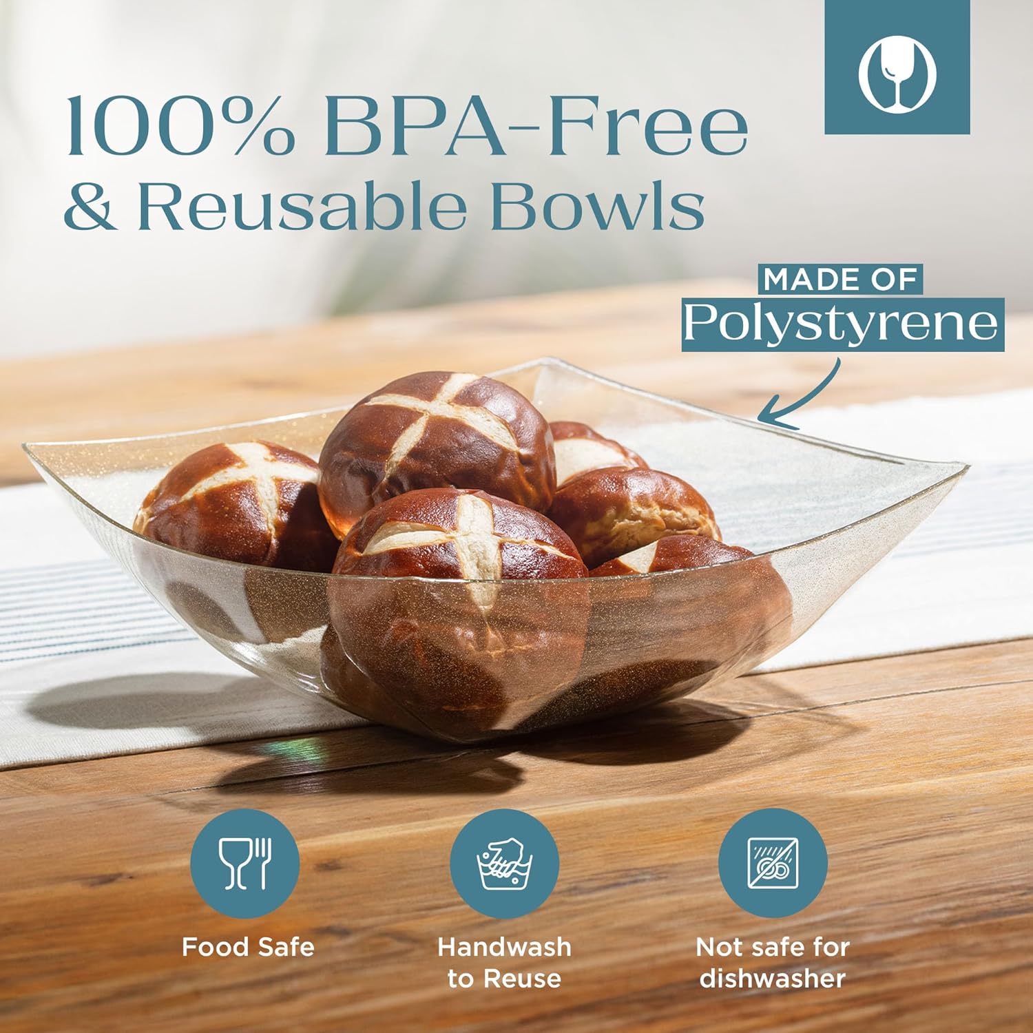 Posh Setting - Gold Glitter Plastic Serving Bowls for Party (64oz - 4 Pack) Square Bowls, Disposable Chip Bowls, Candy Bowls for Party Table, Salad Bowls for Party, Candy Containers for Candy Buffet
