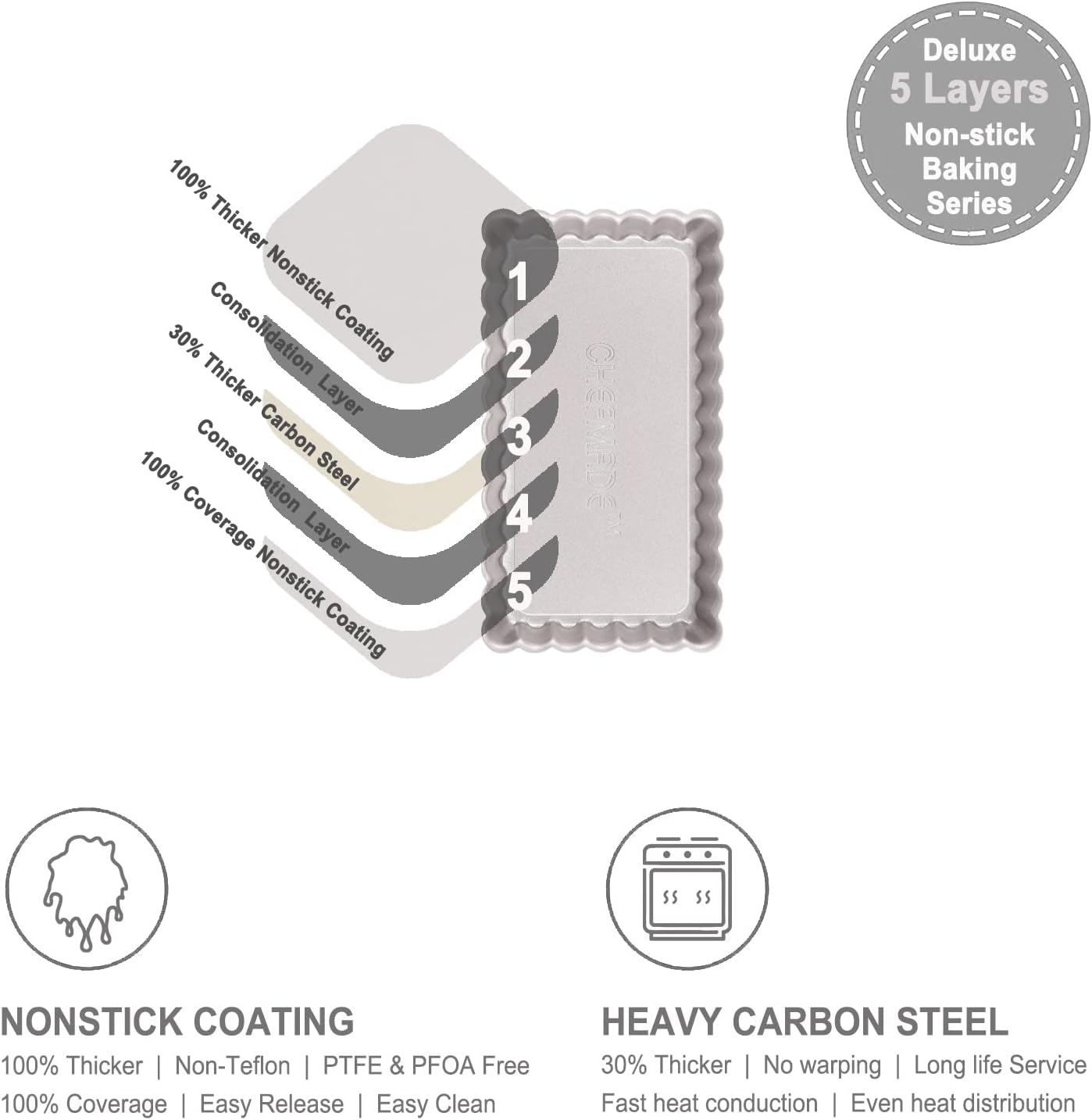 - Commercial Grade : Adopts thickened 0.8mm carbon steel to accelerate even heat. Strengthened edge to convenient use and avoid warping. Ensure longer service life