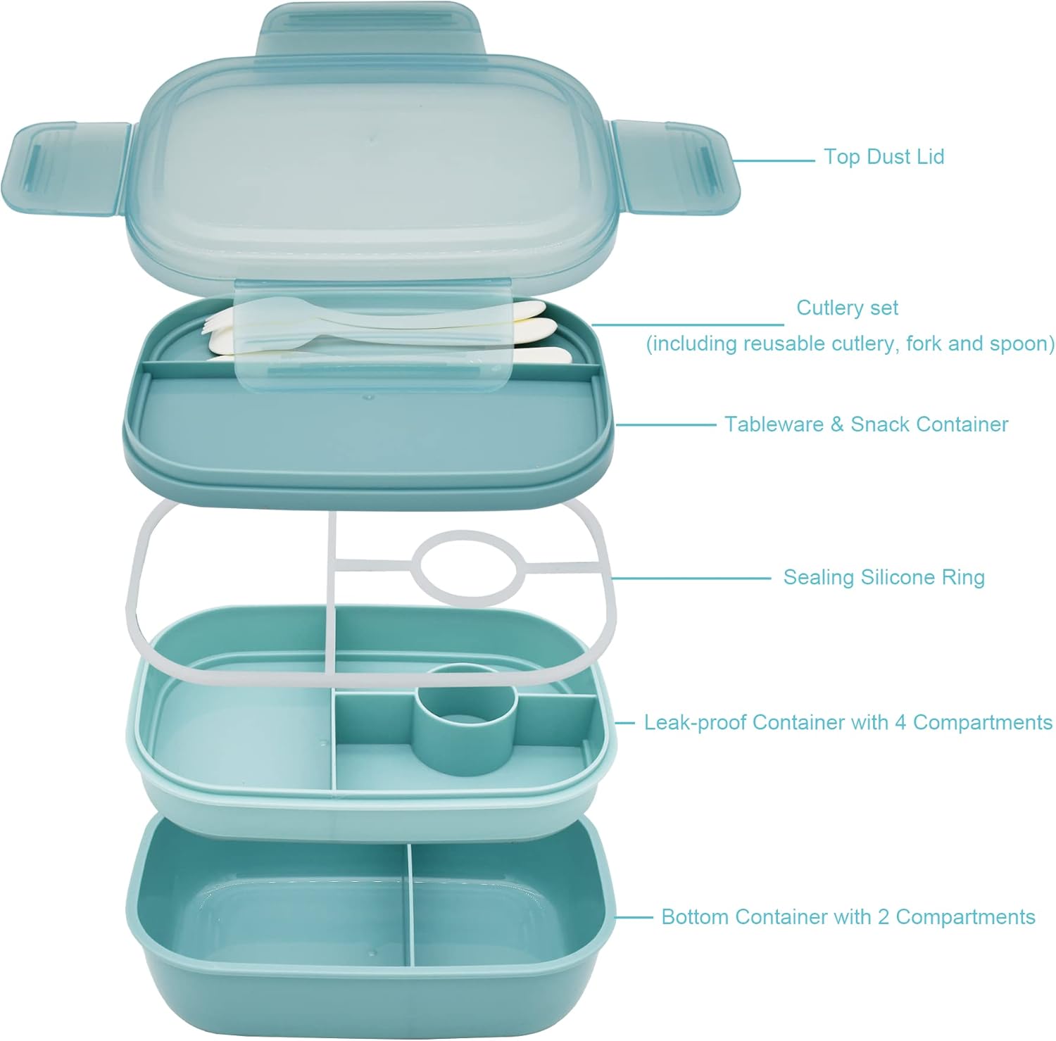 - Multi Compartment Design: 3 stackable containers, the middle container has three built-in compartments including a dip compartment, the bottom container is suitable for packing staple food, and the top has a separate tableware storage container.