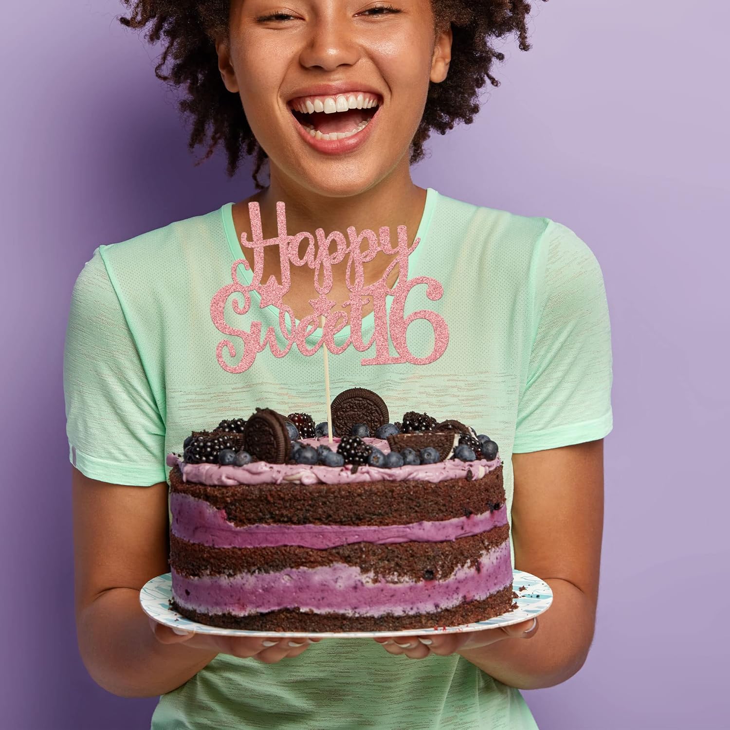 - 💕💕This Happy Sweet 16 Cake Topper is so cute and good for 16th birthday party, 16th anniversary party cupcake decorations. They can make your cupcake more attractive and bring the fun to your party. You can also apply them for ice cream, fruits, cookies and other desserts.