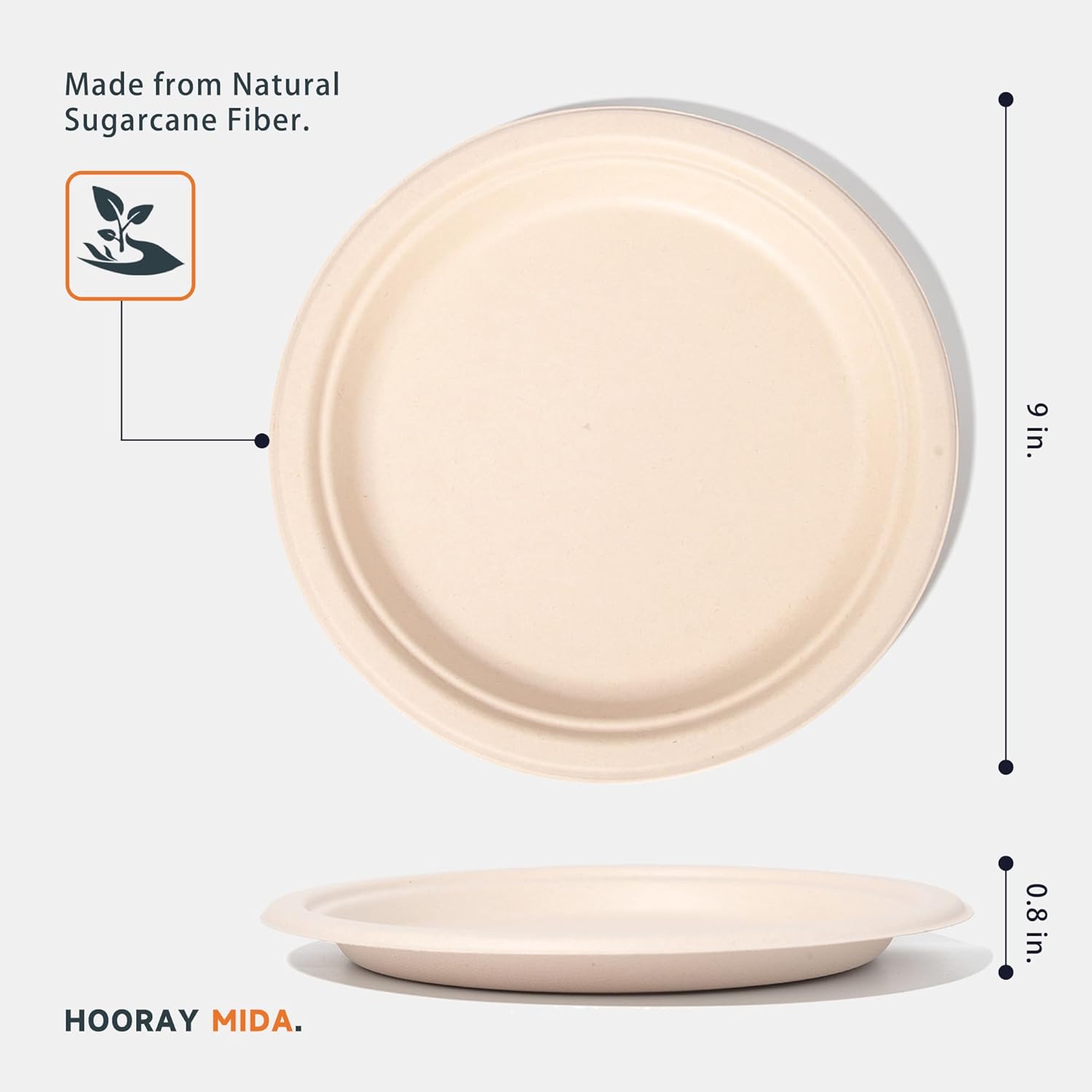 100% Compostable Plates - Disposable, Heavy Duty, Biodegradable, Eco-Friendly (Natural, 9 inch, 125-Count)