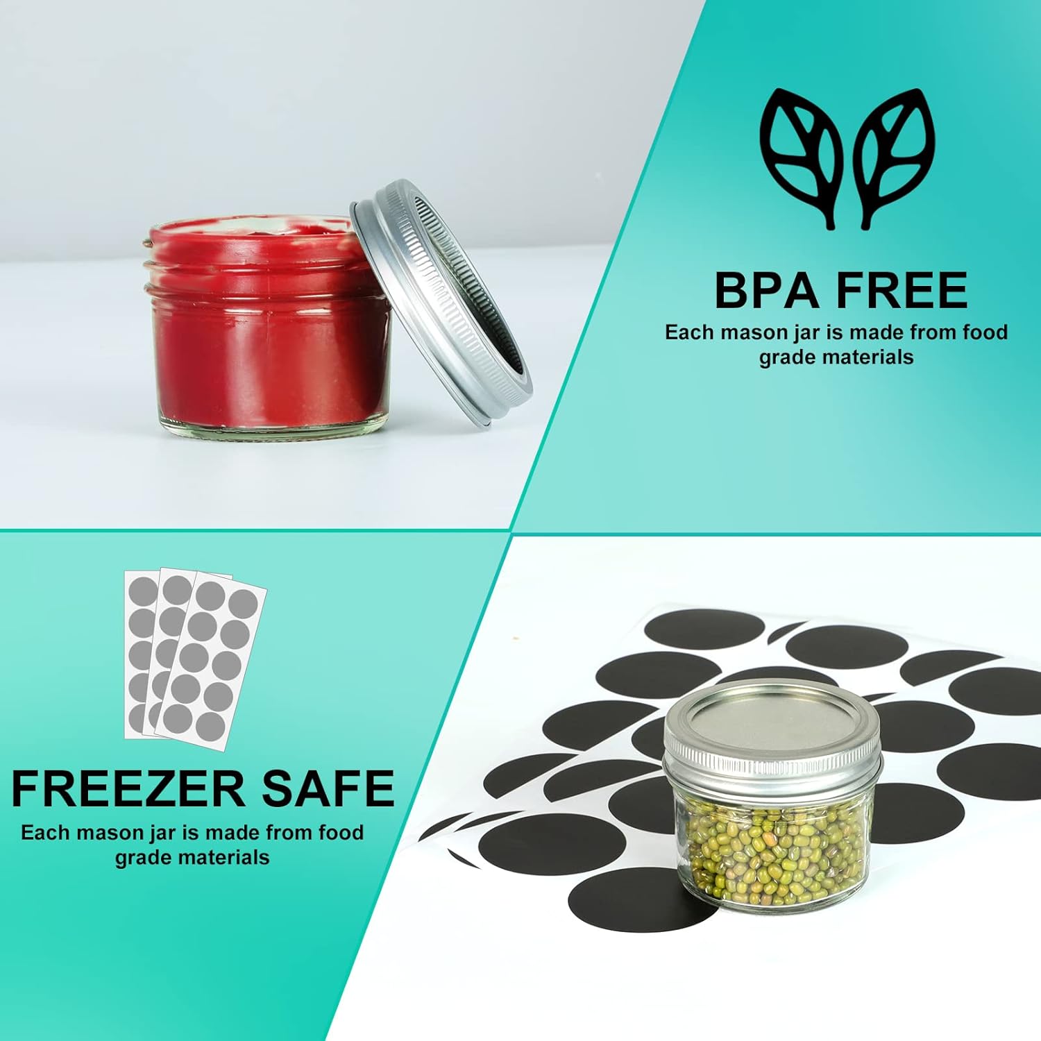 - HIGH QUALITY:Thick 4oz VERONES mason jars with food-safe, corrosion resistant lids - material is certified safety standards.