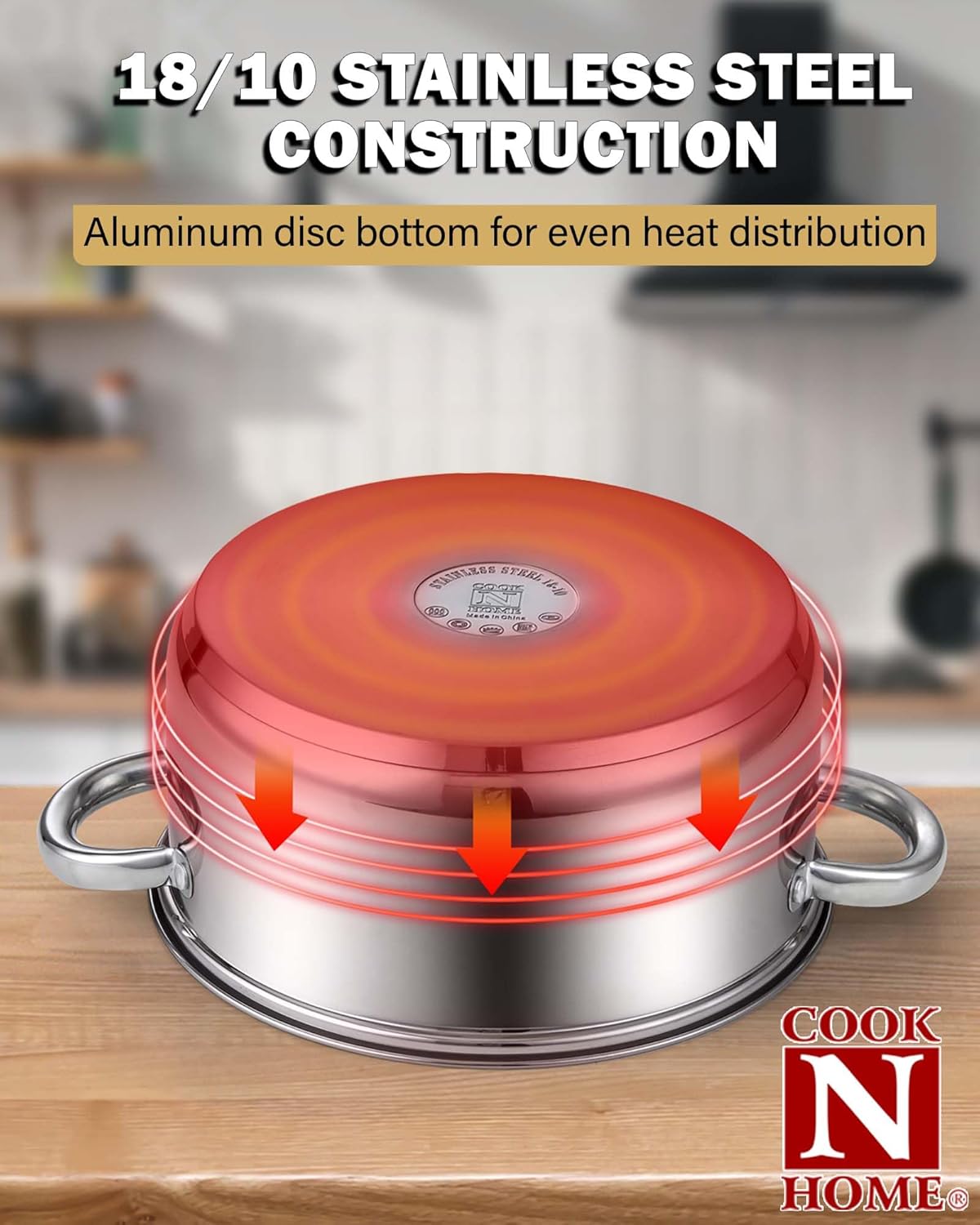 - Excellent Heat Distribution: This Stainless steel stock pot is made of mirror-polished 18/10 stainless steel, making it resistant to deformation; An aluminum disc bottom between the steel layers ensures even heating for optimal cooking results