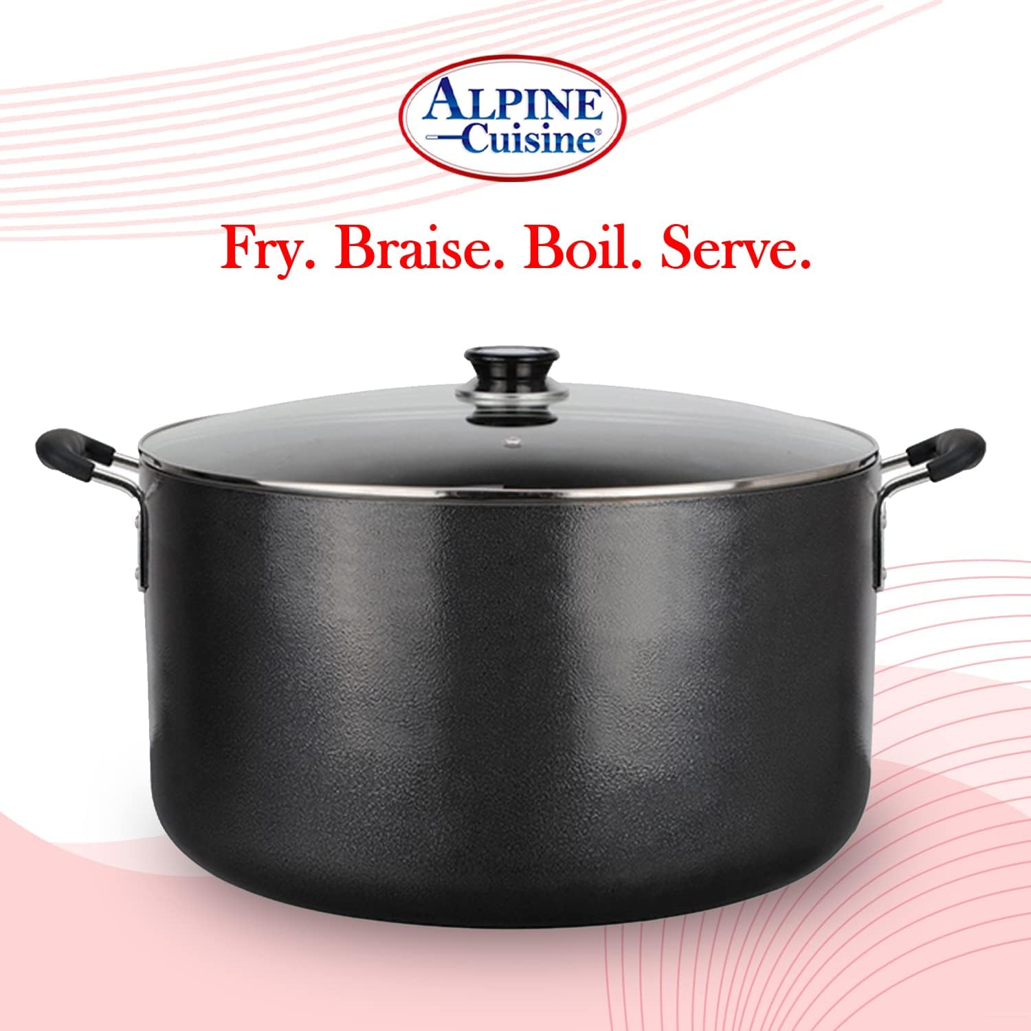 Alpine Cuisine 38 Quart Non-stick Stock Pot with Tempered Glass Lid and Carrying Handles, Multi-Purpose Cookware Aluminum Dutch Oven for Braising, Boiling, Stewing