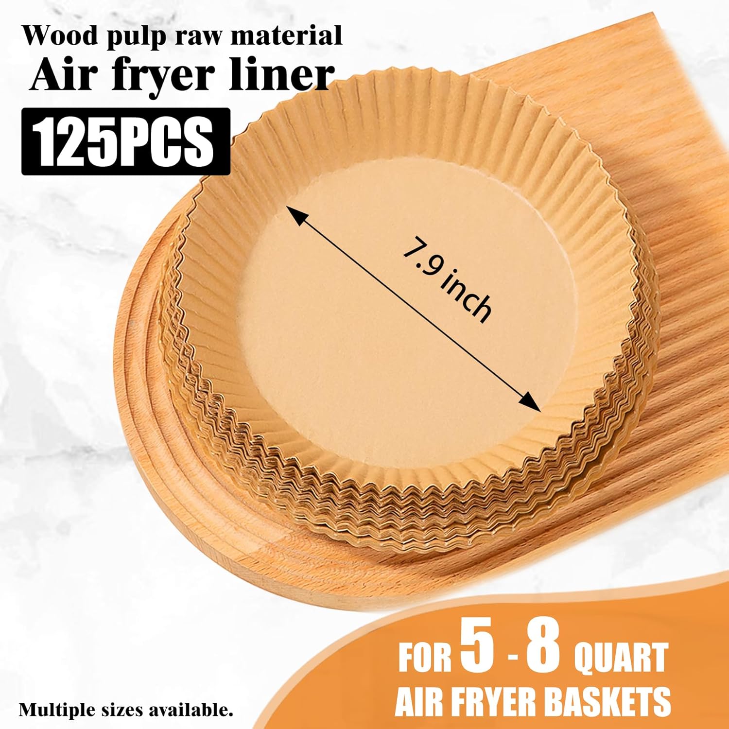 Air Fryer Disposable Paper Liners for Ninja AF161 AF150AMZ, 125 Pcs Round Parchment Cooking Liner for Airfryer, Microwave Oven, Frying Pan, 8 Inch Fryers Filters Sheets for 5 6 7 8 Qt Baking Basket