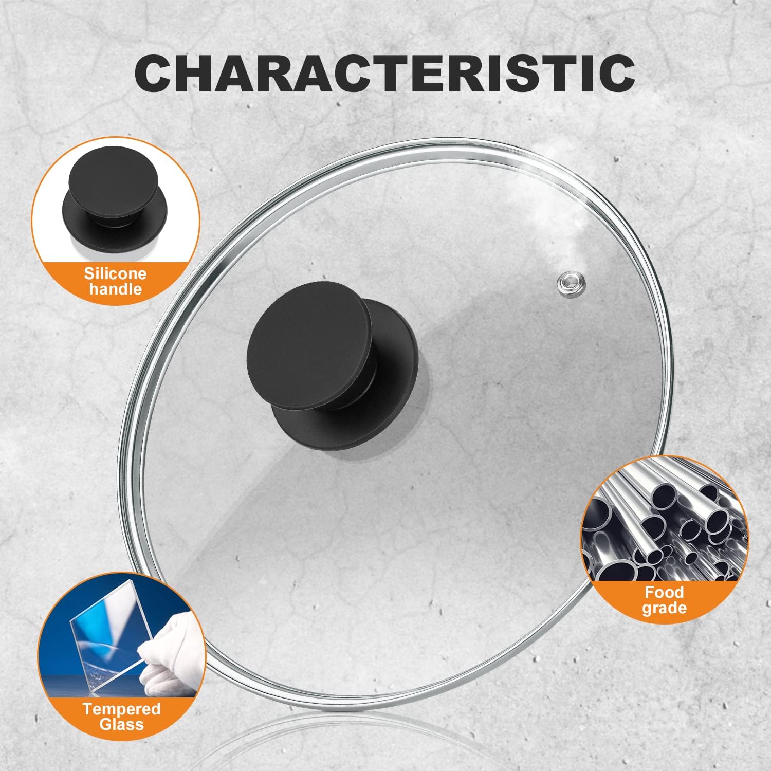 - 【Tempered Glass Pan Lid】: The pan lid with stainless steel rim fits tightly to pots and pans, making it easier to lock in moisture and seal in flavor of food. Suitable for most of cookware such as cast iron skillets, frying pans, woks, pots and more.