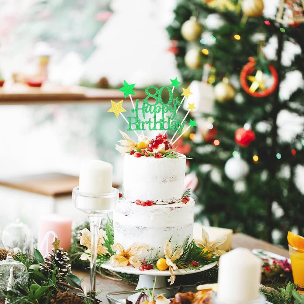 Glittery 80th Happy Birthday Cake Topper with Star,Personalised 80 Birthday Cake Toppers Party Decorations Party Supplies for Boys Girls Green Gold