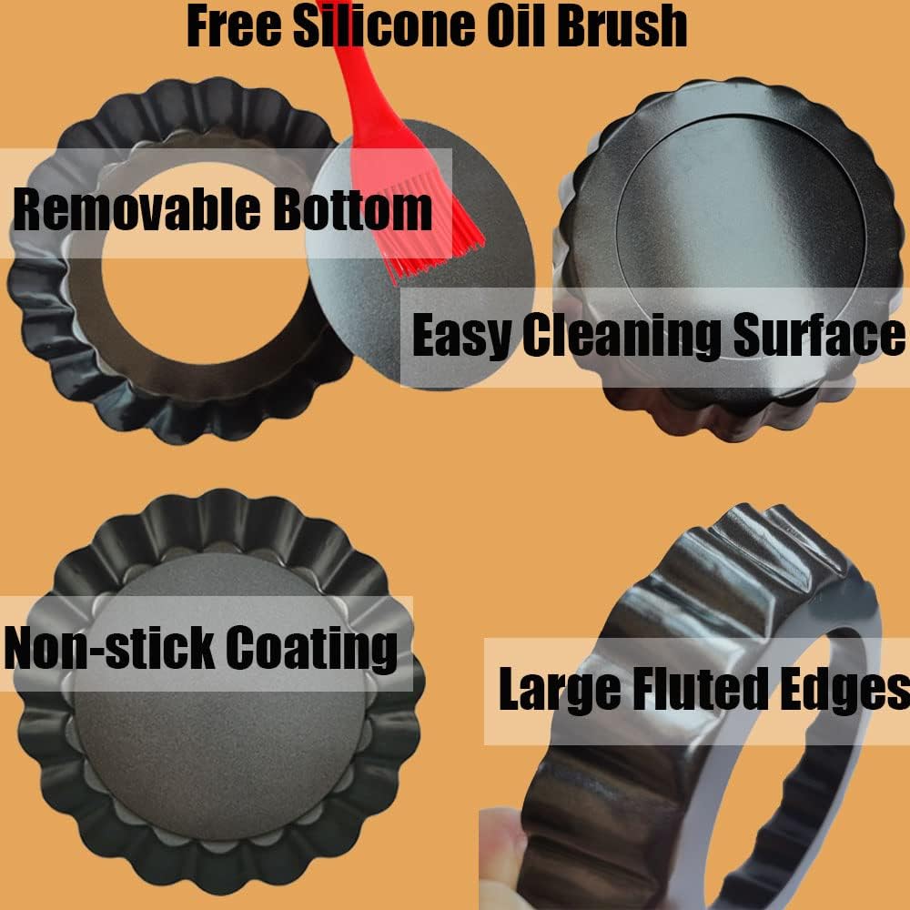 - 【EASY CLEANING】Each quiche pan with non-stick surface. These metal tart pans bake evenly and didn’t stick to the pan, It is recommended to brush a layer of oil before use for better demoulding. They didn’t even look like they need to be cleaned. All parts are dishwasher safe.