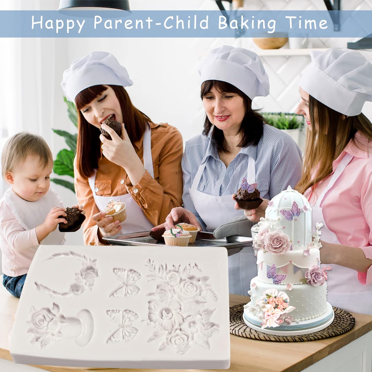 Rose Fondant Molds, Flower Pot Bouquet Butterfly Chocolate Cake Decorating Silicone Molds for Cupcake Topper, Candy, Sugar Craft, Floral Paste, Mousse, Gum Paste, Epoxy Resin, Polymer Clay, Home Decor