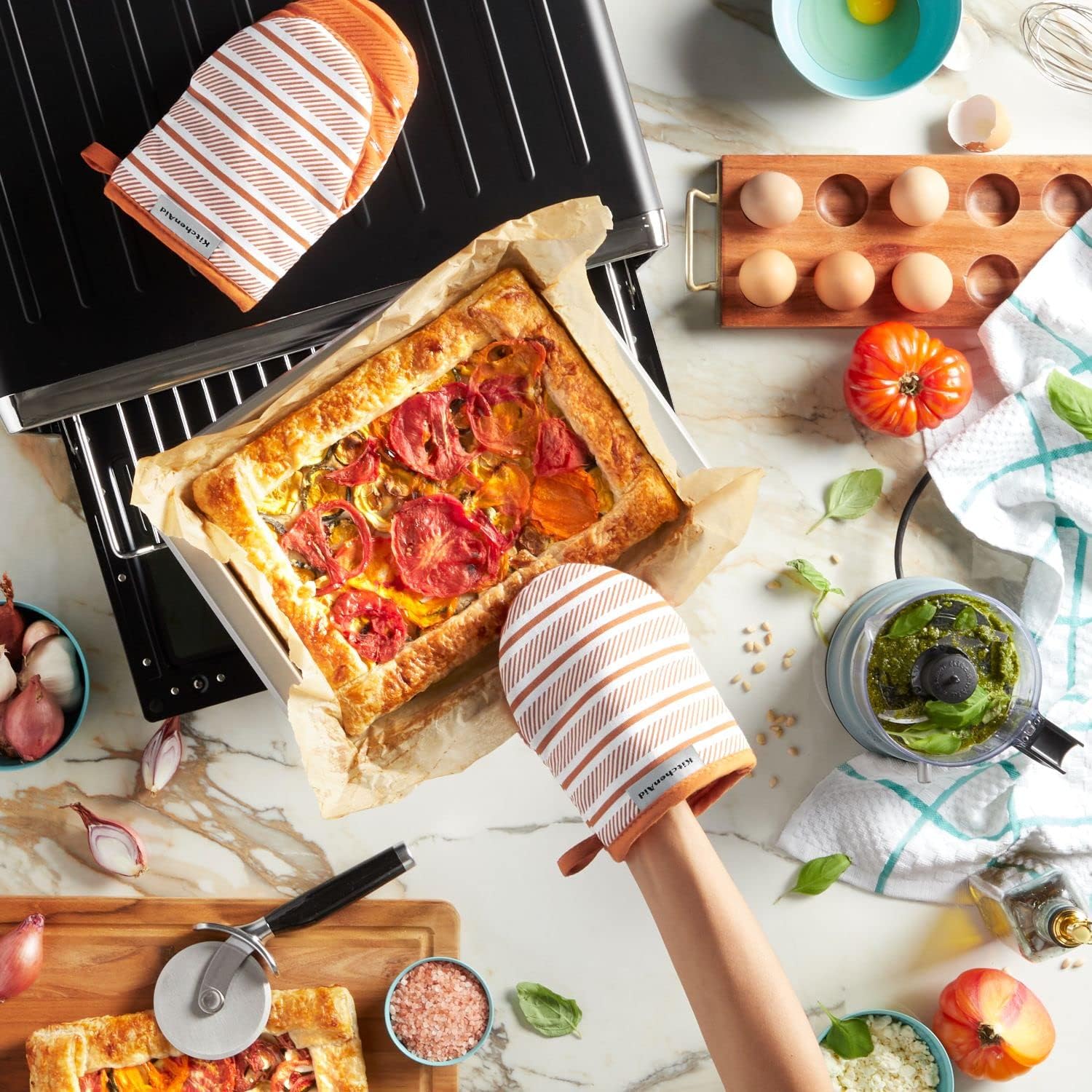 - SET OF TWO: This set includes two (2) KitchenAid Albany Mini Mitts, each measuring 5.5" W x 8" L.