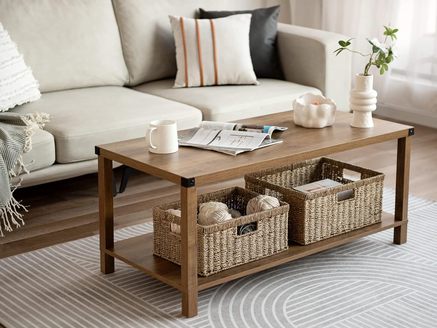 - The natural color of rattan baskets for storage makes for a warm, cozy addition to any table setting.