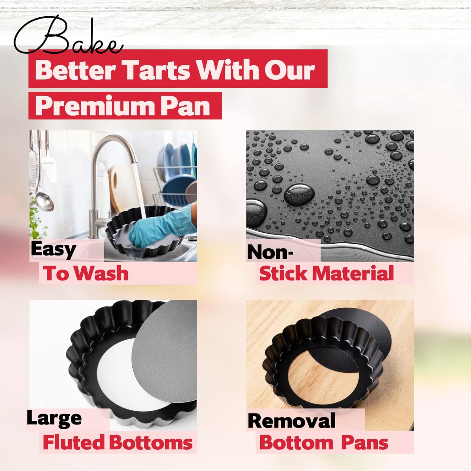 - ❖ Enjoy Secure Baking: Keep your kitchen safe with our food-grade tart pans. Our non-stick tart mold is free from PFOA, BPA, and PTFE. The edges of the pan are not sharp, and it is polished with special care to protect your fingers while handling it