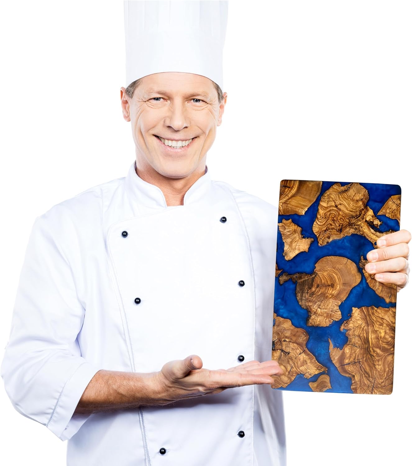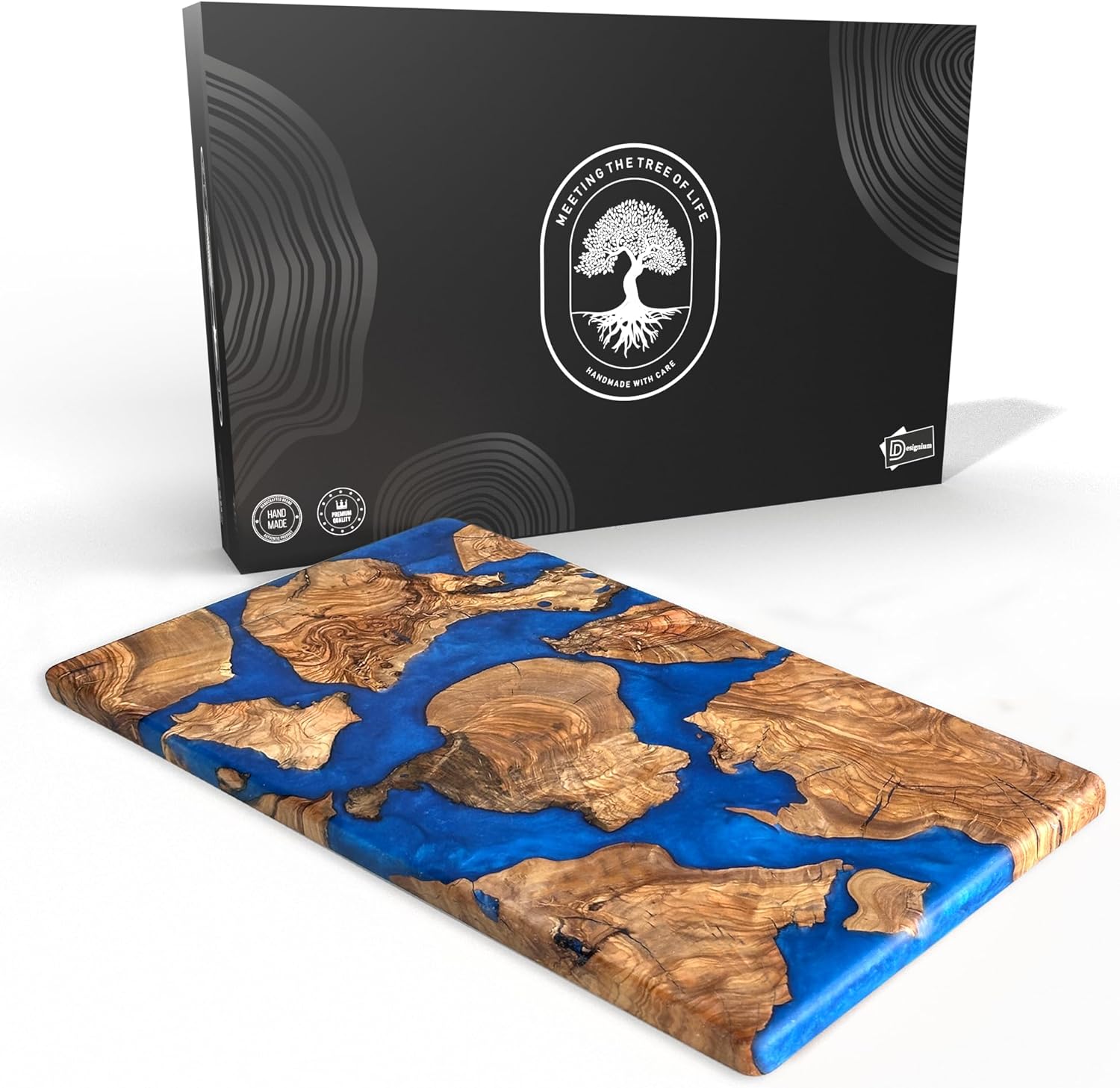- Bring the Ocean to Your Kitchen: Take your culinary experience to the next level with this handmade olive wood blue resin charcuterie board. This blue cheese board is perfect wooden board decorative for kitchen as an ocean cutting board or beach cutting board. The sustainable olive wood and resin combination create a stunning oasis and river design blue cutting board appearance that adds a coastal touch of elegance to your countertop.