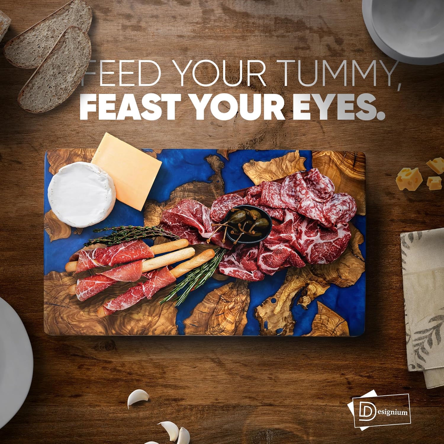 - Epoxy Resin Charcuterie Board: Nature meets art in these exquisitely carved beautiful cool charcuterie boards. Olive wood cheese board has been enriched with a beauty of resin design by applying blue color river strip. Our epoxy cutting board wood and boarderie arte cheese&charcuterie board are handmade from sustainably sourced olivewood and accented with resin by using traditional methods.
