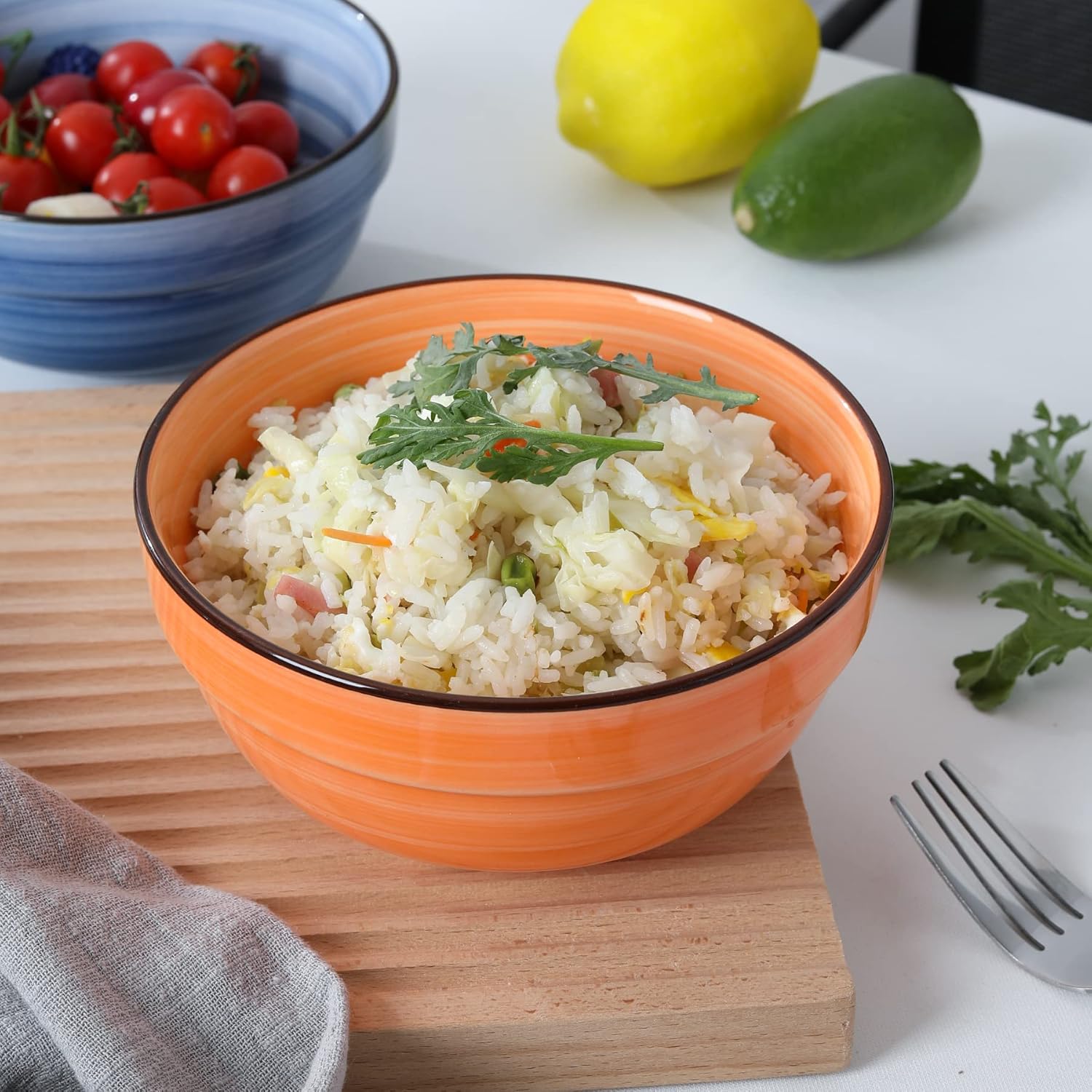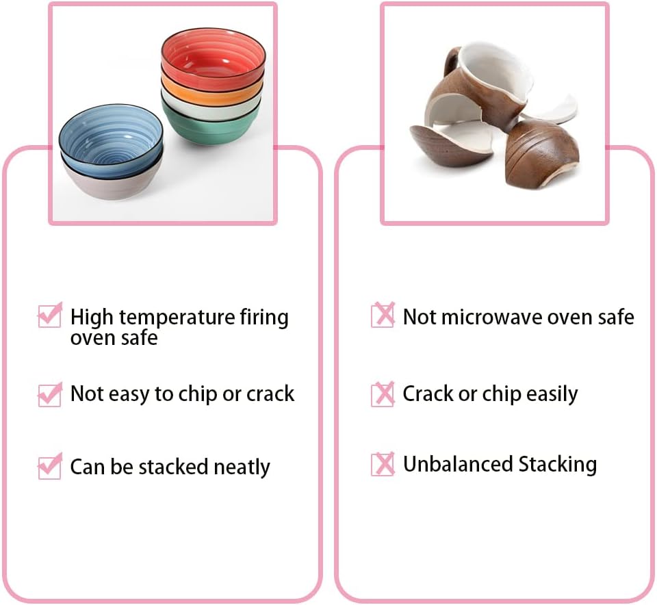 - Safe and Durable Pro-grade Porcelain: These ceramic bowls are made of durable porcelain, non-toxic, lead-free, cadmium-free that safe for daily using, never worry about harmful substances leaching into your food. They are fired at a high temperature to maximize the strength of the porcelain, sturdy enough to prevent from chip& crazing& scratches, withstanding the harsh tests of long-lasting daily life. SAFE FOR DISHWASHER, MICROWAVE, OVEN AND FREEZER.