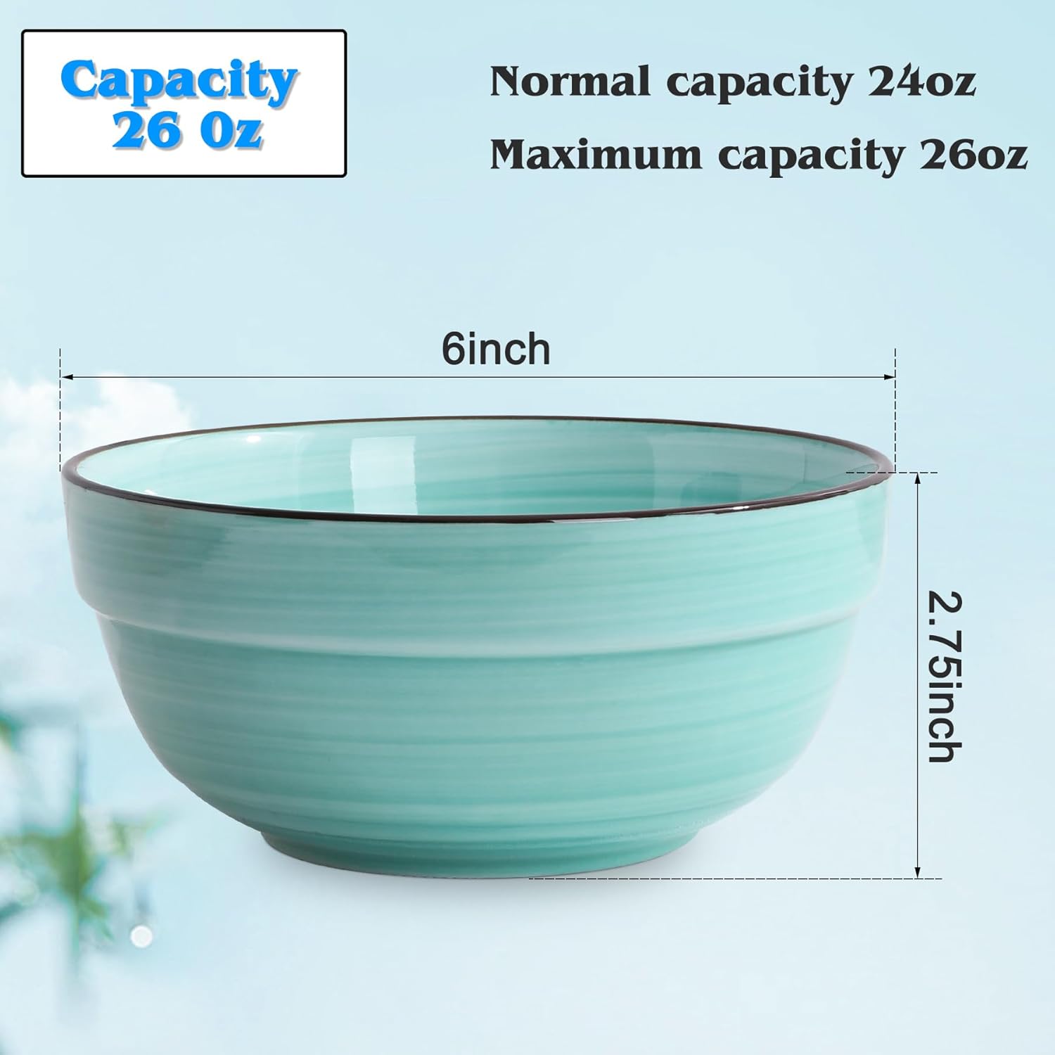 HAPPY KIT Ceramic Serving Bowls, 6 Inch Colorful Bowls for Kitchen, 24 Ounce Soup Bowls Set of 6, Dishwasher & Microwave Safe, Porcelain Bowls for Cereal Soup Rice Pasta Salad Oatmeal Soup